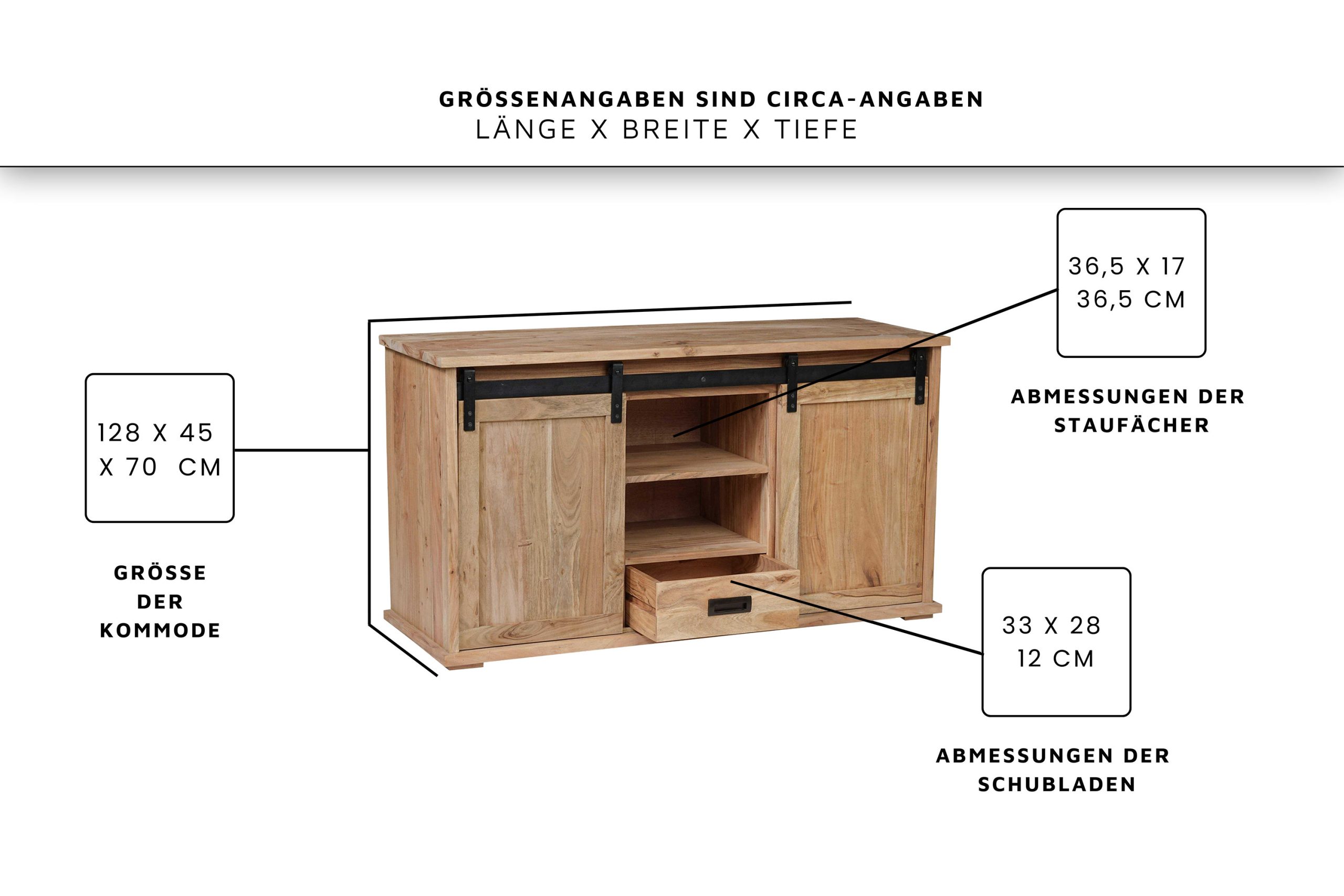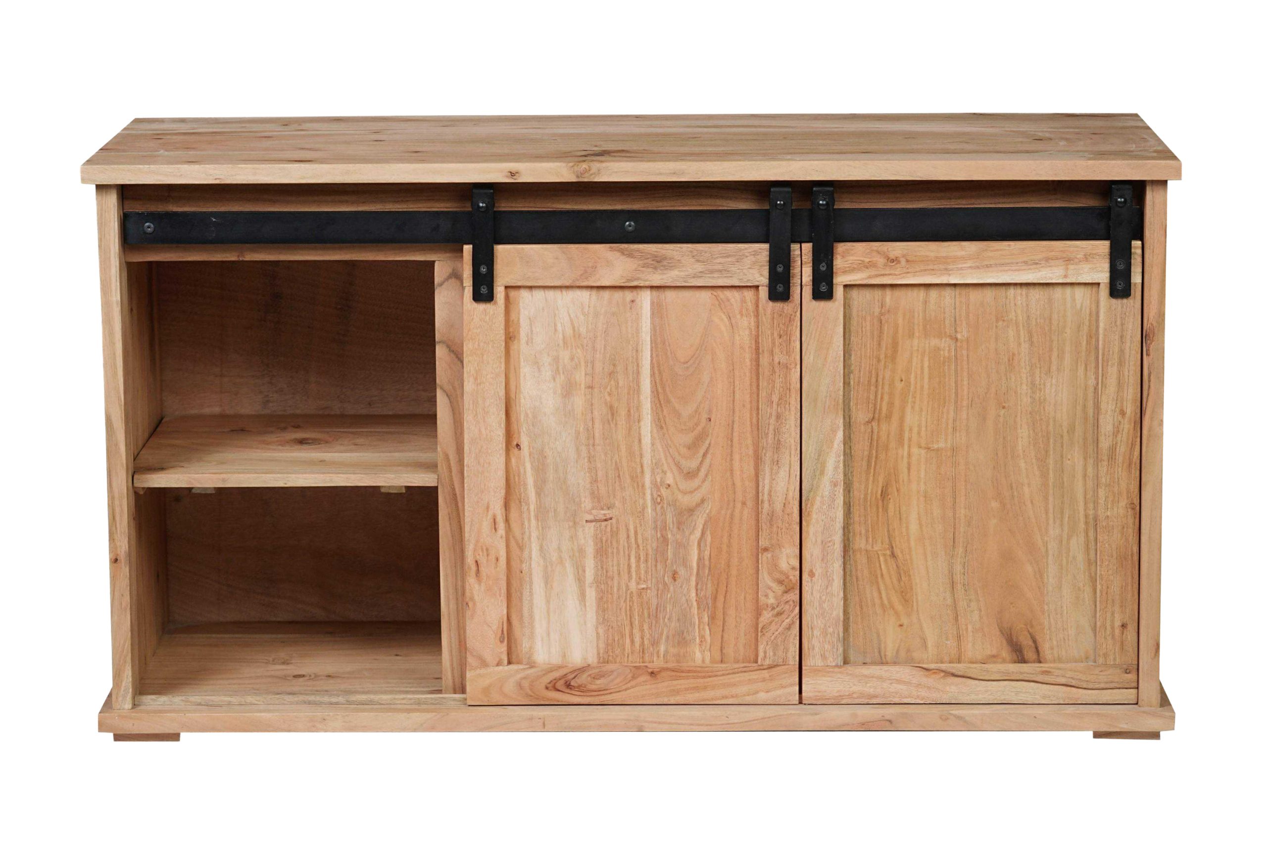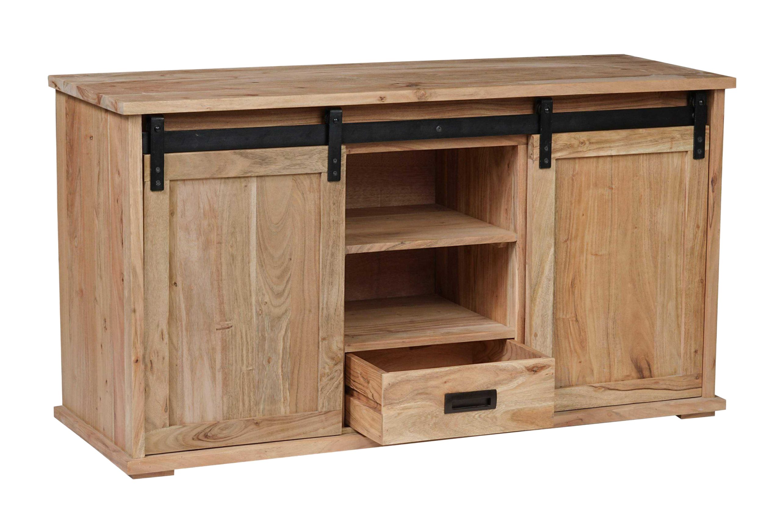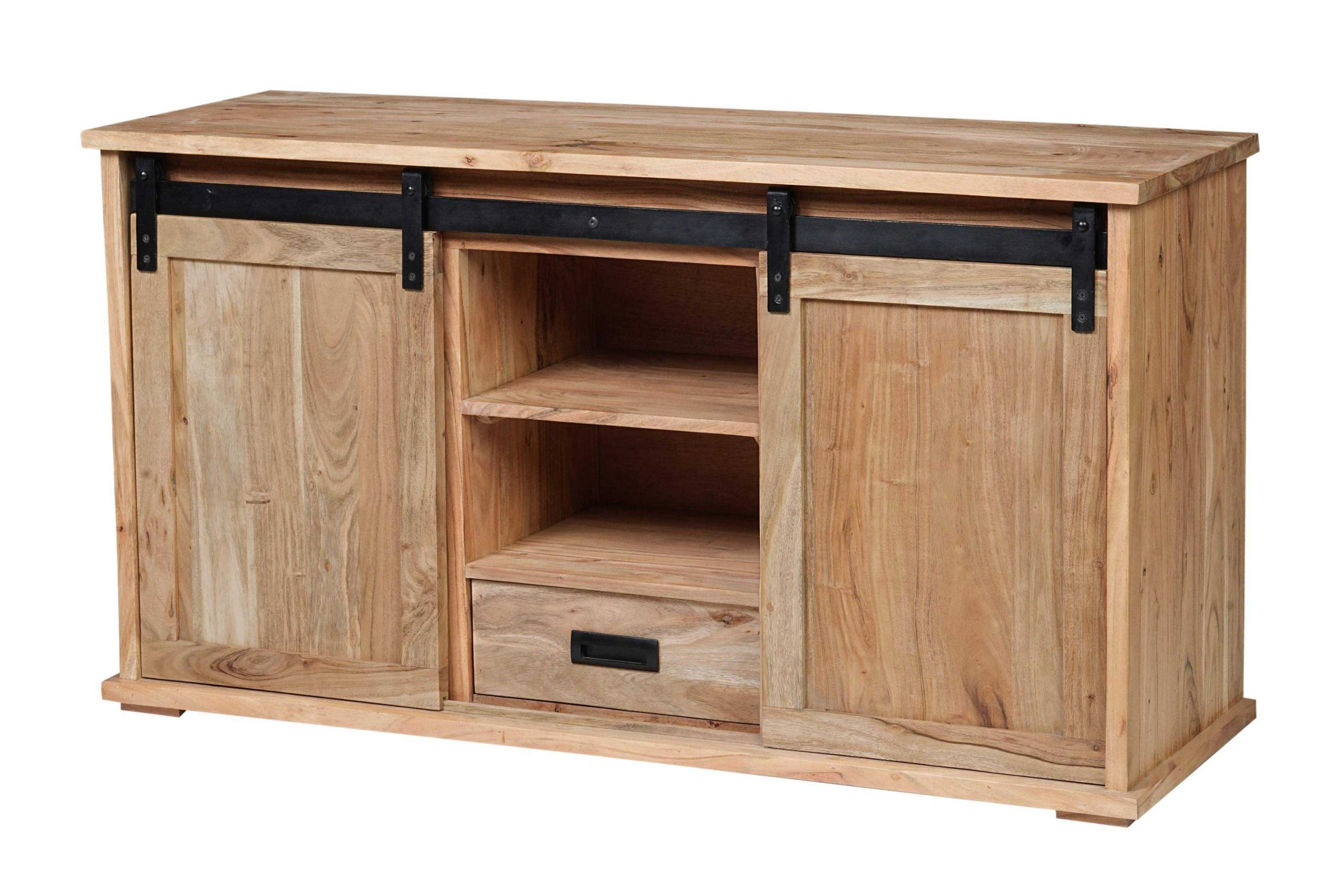 TV-Board Liano IV | Akazienholz massiv | Naturfarben | 2 Schiebetüren, 6 Fächer & ein Schubfach | 128x45x70 cm