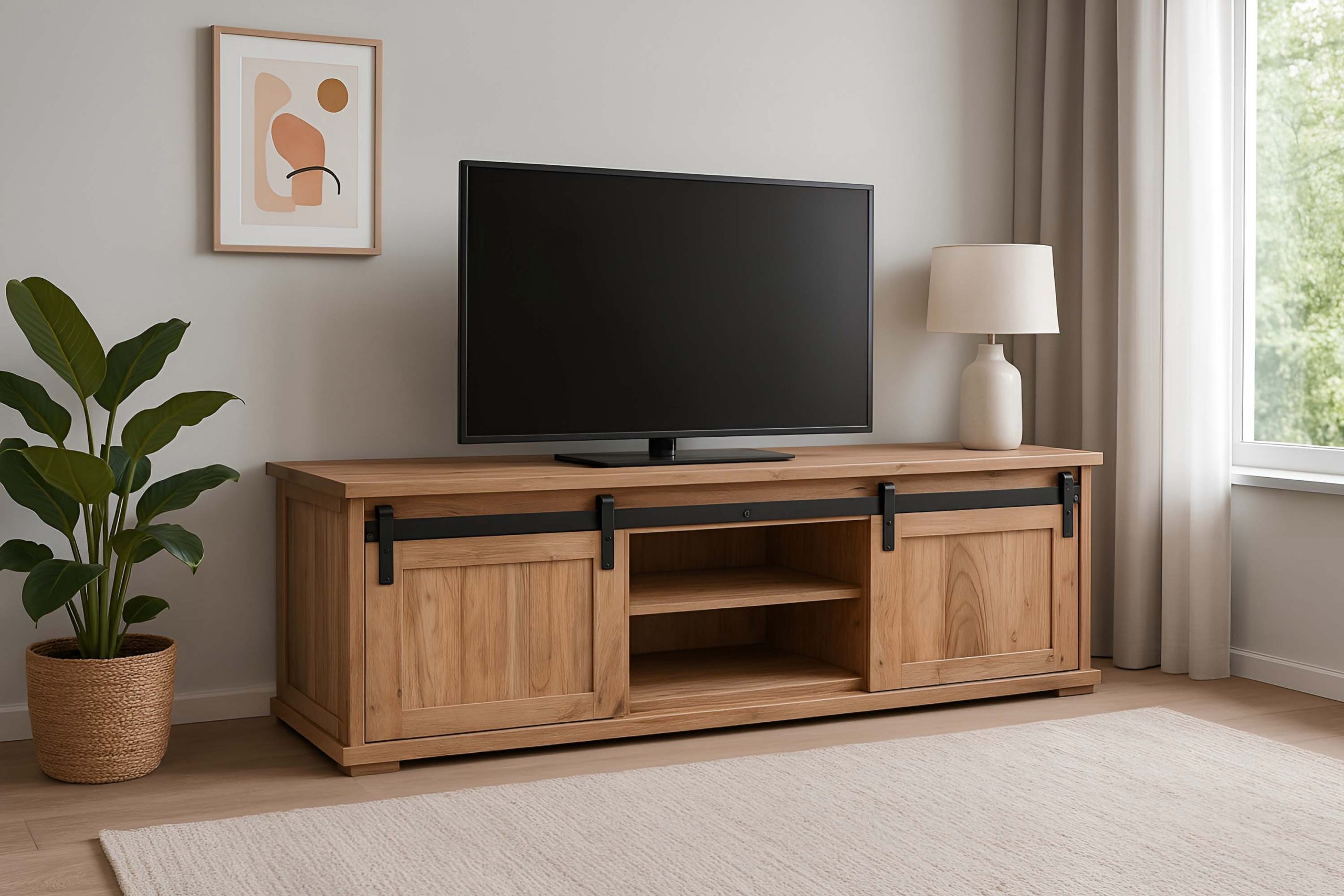 Das TV-Board aus massivem Akazienholz kombiniert hochwertiges Material mit durchdachter Funktionalität. Die natürliche Maserung macht jedes Möbelstück einzigartig und sorgt für ein stilvolles Ambiente.