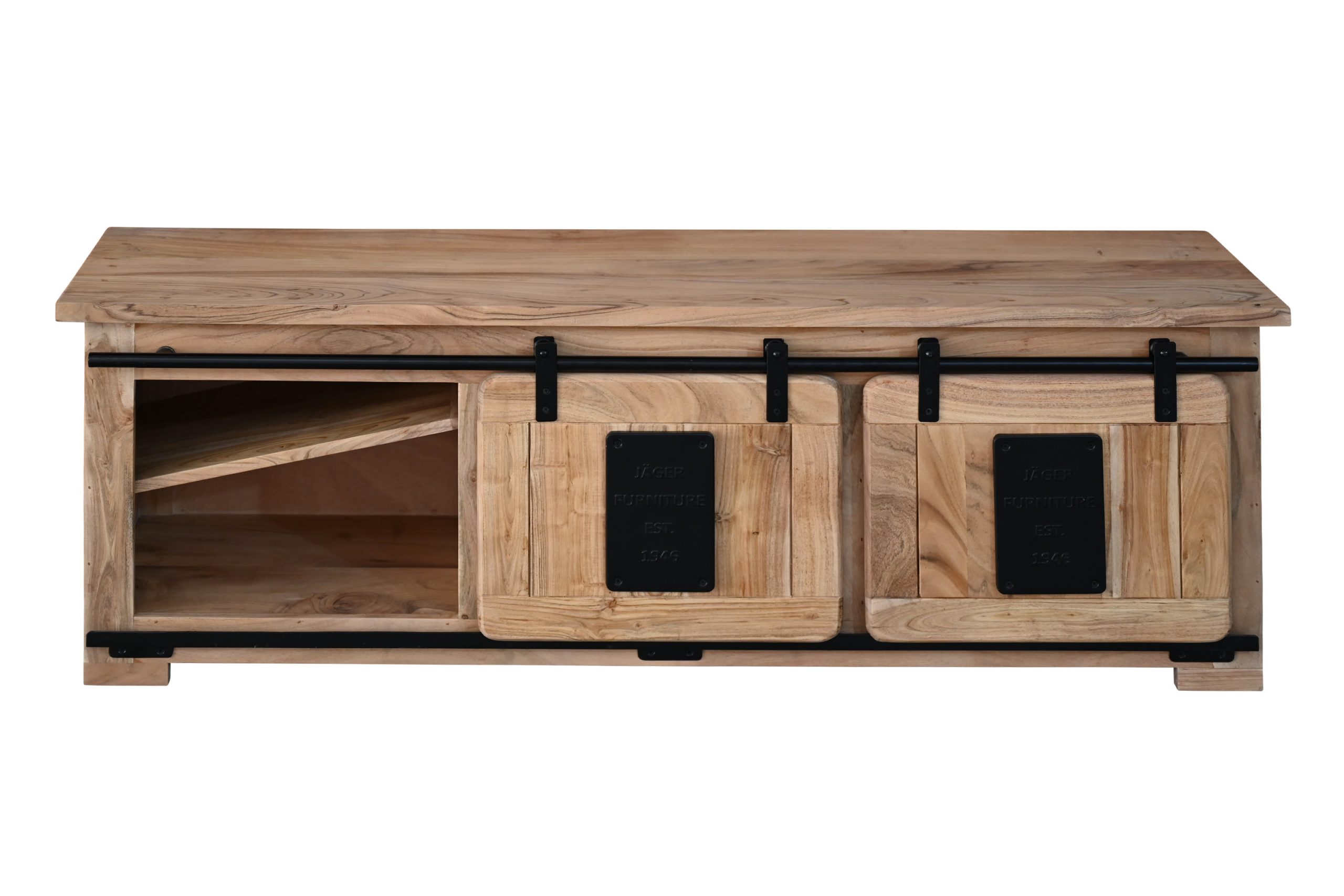 Bestellen Sie jetzt das Lowboard Libro VI – ein massiver TV-Schrank aus Akazienholz, der natürliche Eleganz, praktischen Stauraum und ein starkes Preis-Leistungs-Verhältnis vereint!