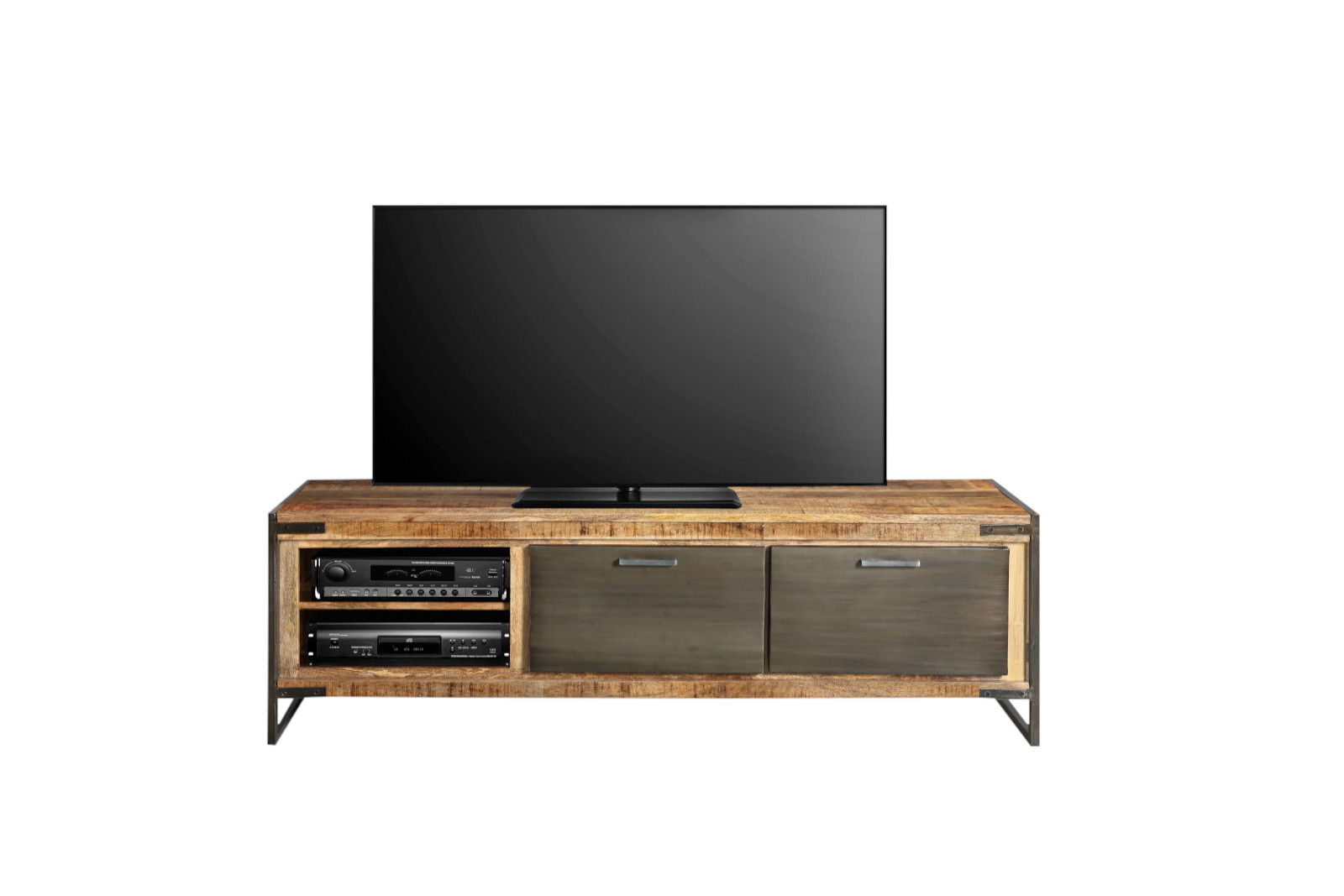 Hochwertiges Lowboard Arta 1, Mangoholz massiv & lackiert, mit je 2 Holztüren & offenen Fächern, 160 x 50 x 40 cm