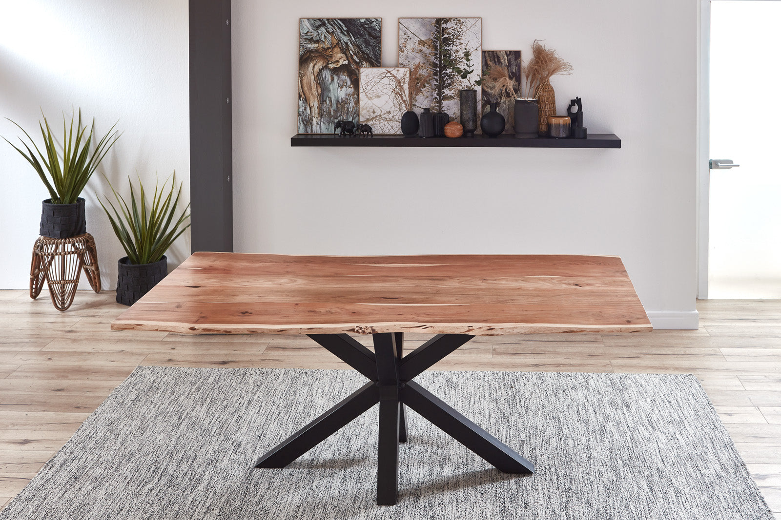 Unsere Massivholztische entstehen aus hochwertigem, echtem Naturholz – und genau das macht ihren besonderen Charakter aus. Jeder Tisch ist ein Unikat, geprägt von der natürlichen Form des Baumstamms und der markanten Baumkante.