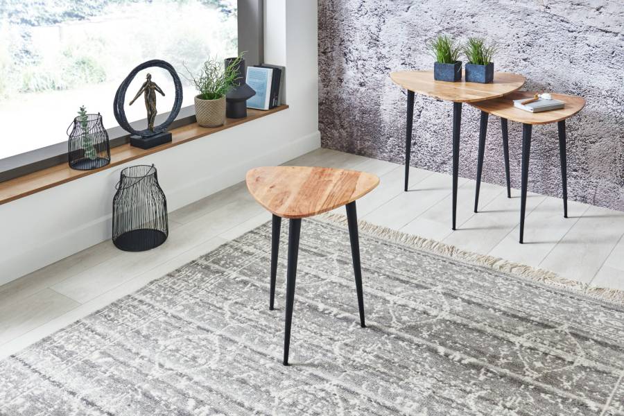 Beistelltische aus Holz sind sehr beliebt und aus Massivholz auch besonders langlebig. Bei unseren Wurzelscheibentischen kommt noch das ungewöhnliche Erscheinungsbild dazu – bei diesen Tischen können Sie sicher sein, ein absolutes Unikat zu haben. Als Sets aus drei Tischchen in unterschiedlichen Höhen sind Sie flexibel in der Standortwahl und sparen gleichzeitig Platz, wenn die Tische nicht benötigt werden.