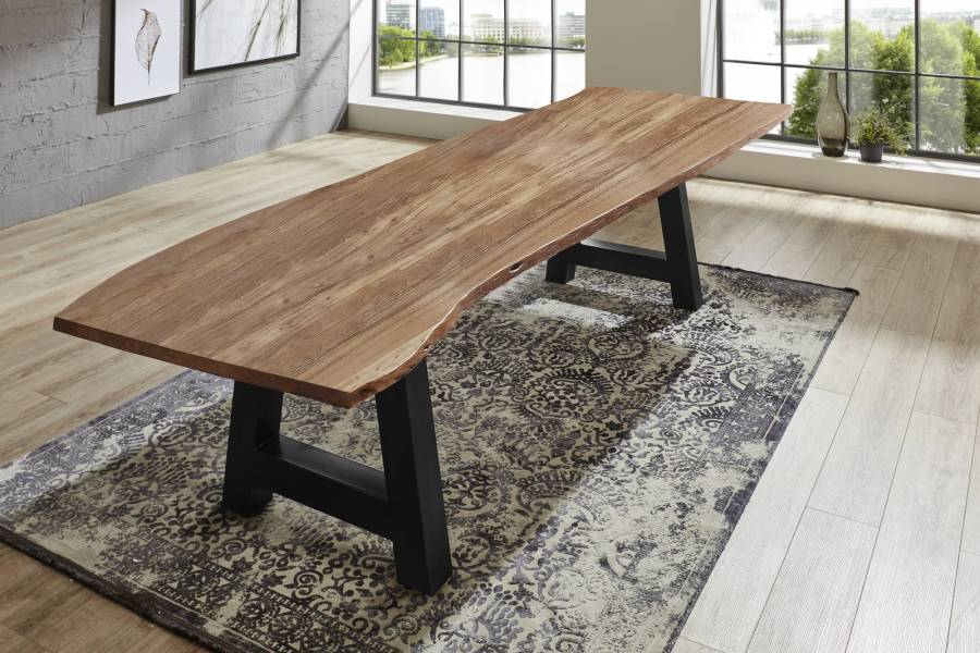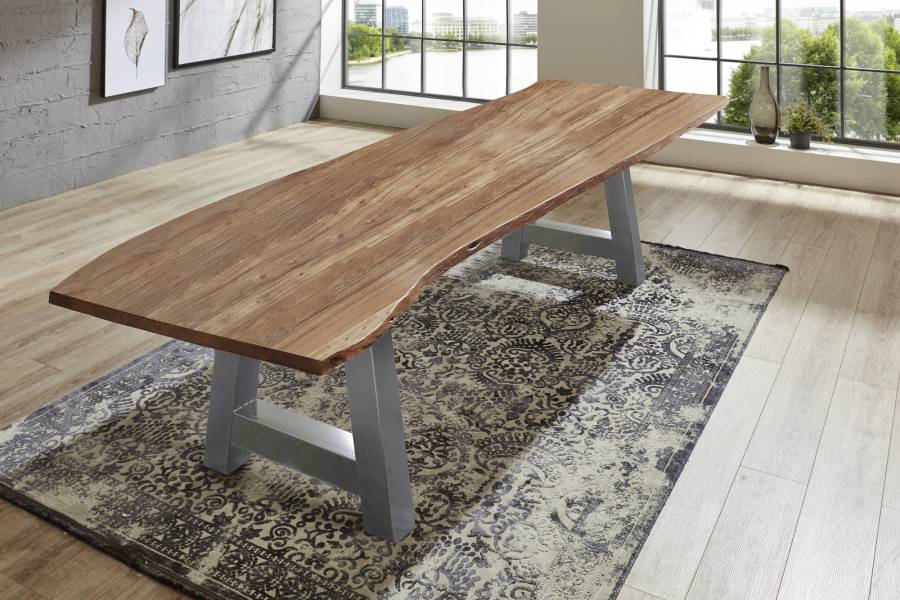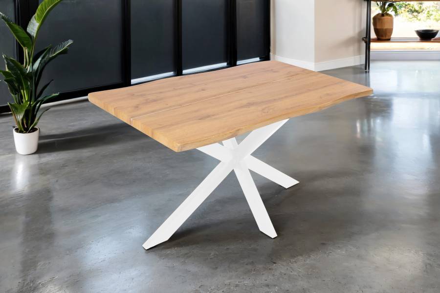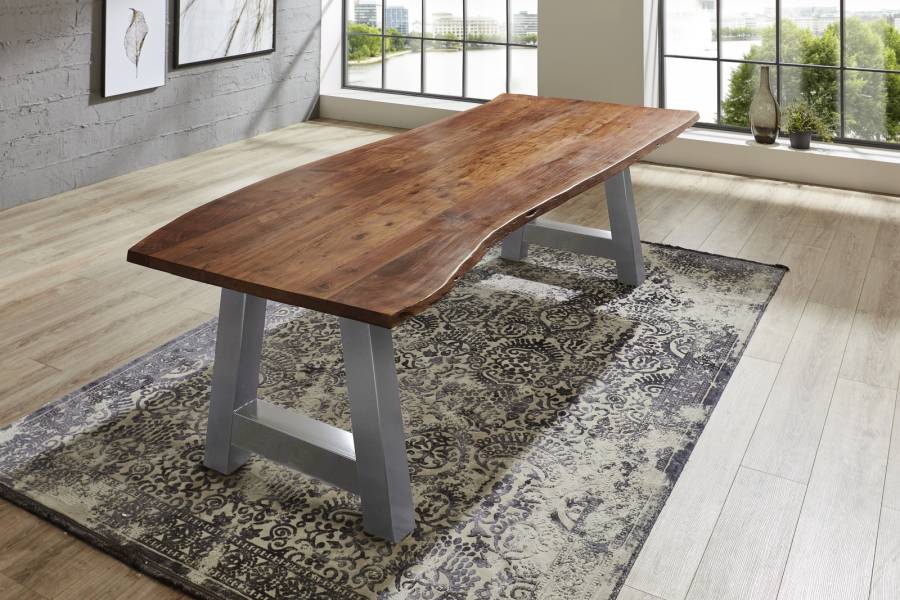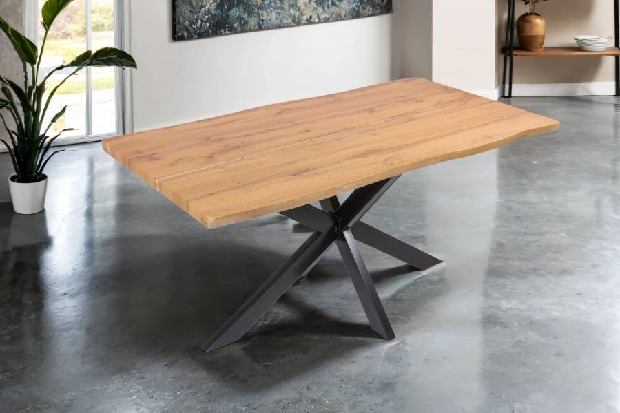 Esszimmertische mit Baumkantenplatte sind robust und langlebig und halten viele Jahre. Die Baumkanten-Tischplatte gibt dem Tisch eine rustikale Ausstrahlung, die dem Essbereich eine natürliche Atmosphäre verleiht und den Tisch zum Hingucker in Ihrer Wohnung macht. Die Baumkantenplatte ist pflegeleicht und kann leicht gereinigt werden, in den meisten Fällen reicht einfaches Abwischen mit einem leicht angefeuchteten Baumwolltuch.