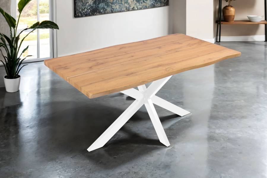 Esszimmertische mit Baumkantenplatte sind robust und langlebig und halten viele Jahre. Die Baumkanten-Tischplatte gibt dem Tisch eine rustikale Ausstrahlung, die dem Essbereich eine natürliche Atmosphäre verleiht und den Tisch zum Hingucker in Ihrer Wohnung macht. Die Baumkantenplatte ist pflegeleicht und kann leicht gereinigt werden, in den meisten Fällen reicht einfaches Abwischen mit einem leicht angefeuchteten Baumwolltuch.