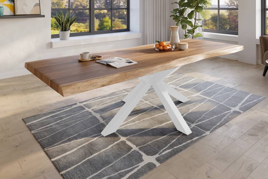 Esszimmertische mit Baumkantenplatte sind robust und langlebig und halten viele Jahre. Die Baumkanten-Tischplatte gibt dem Tisch eine rustikale Ausstrahlung, die dem Essbereich eine natürliche Atmosphäre verleiht und den Tisch zum Hingucker in Ihrer Wohnung macht. Die Baumkantenplatte ist pflegeleicht und kann leicht gereinigt werden, in den meisten Fällen reicht einfaches Abwischen mit einem leicht angefeuchteten Baumwolltuch.