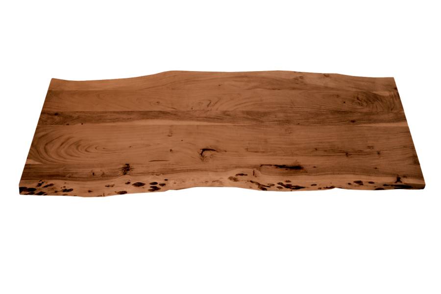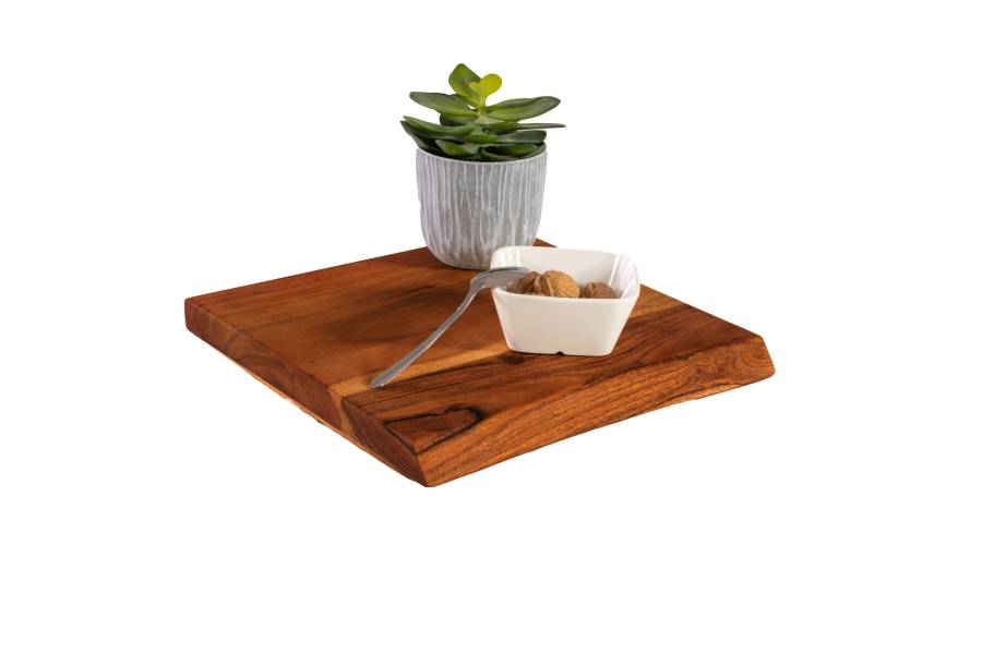 Das bei uns am meisten verwendete Holz ist Akazienholz. Das harte Holz ist dank seiner natürlichen Eleganz und Widerstandsfähigkeit wie geschaffen, um daraus Holzplatten mit echter Baumkante herzustellen und außerdem unempfindlich gegen Kratzer und Schrammen. Bei den Platten hier im Shop haben wir das Holz mit einer farblosen Lasur lackiert – so kommt die individuelle Schönheit des Holzes am besten zur Geltung und die Platten sind universell einsetzbar, pflegeleicht und unempfindlich.