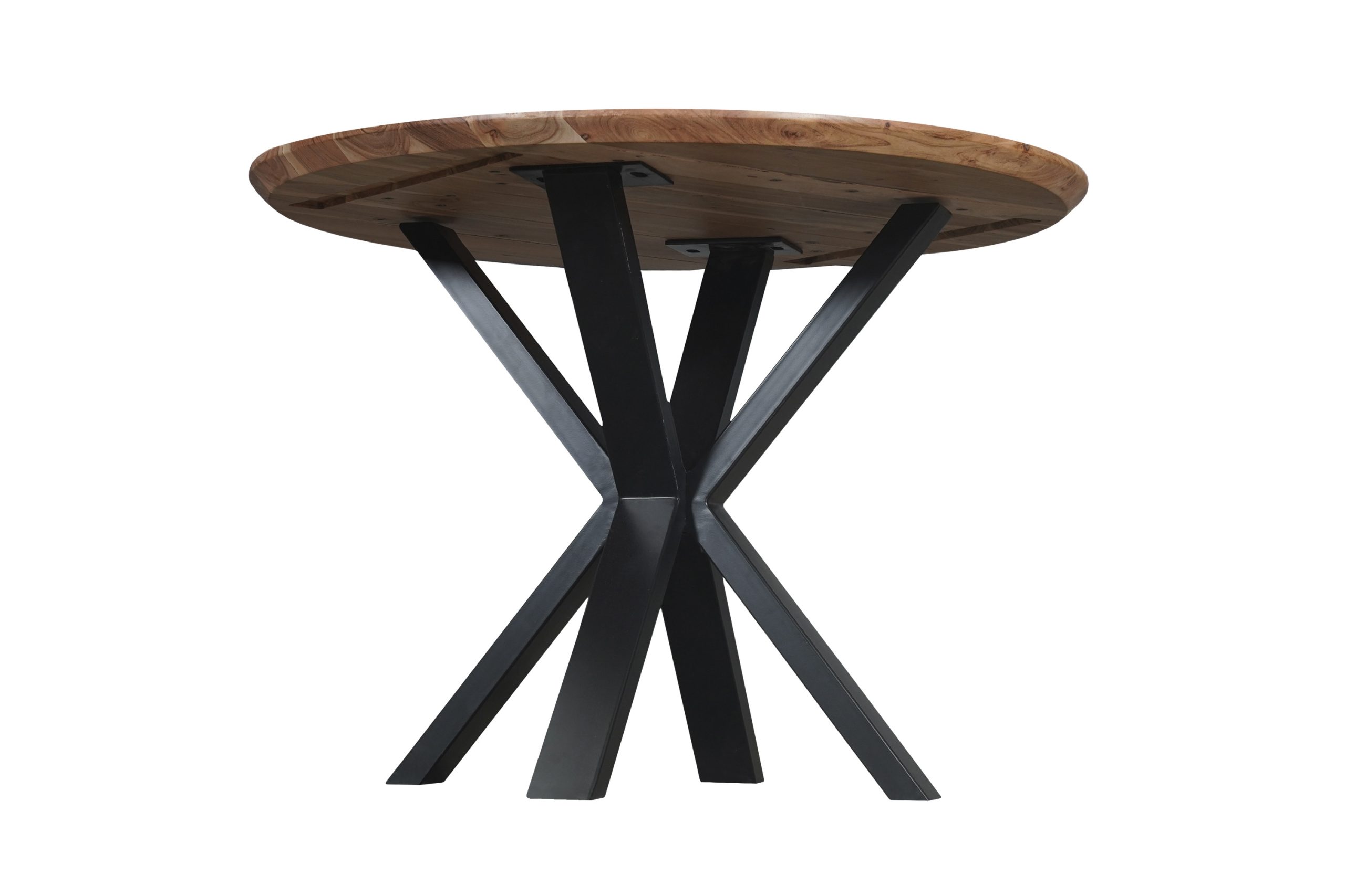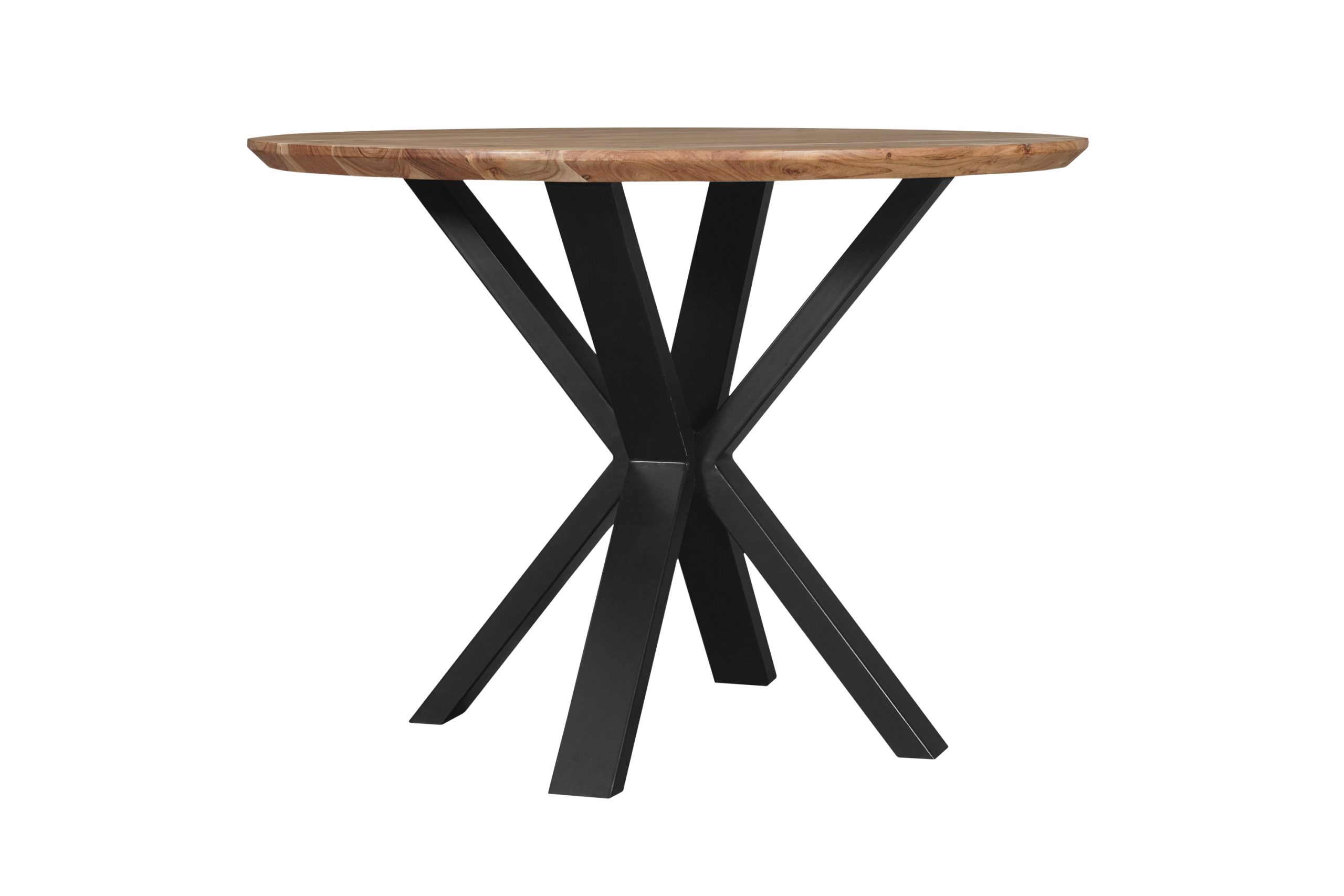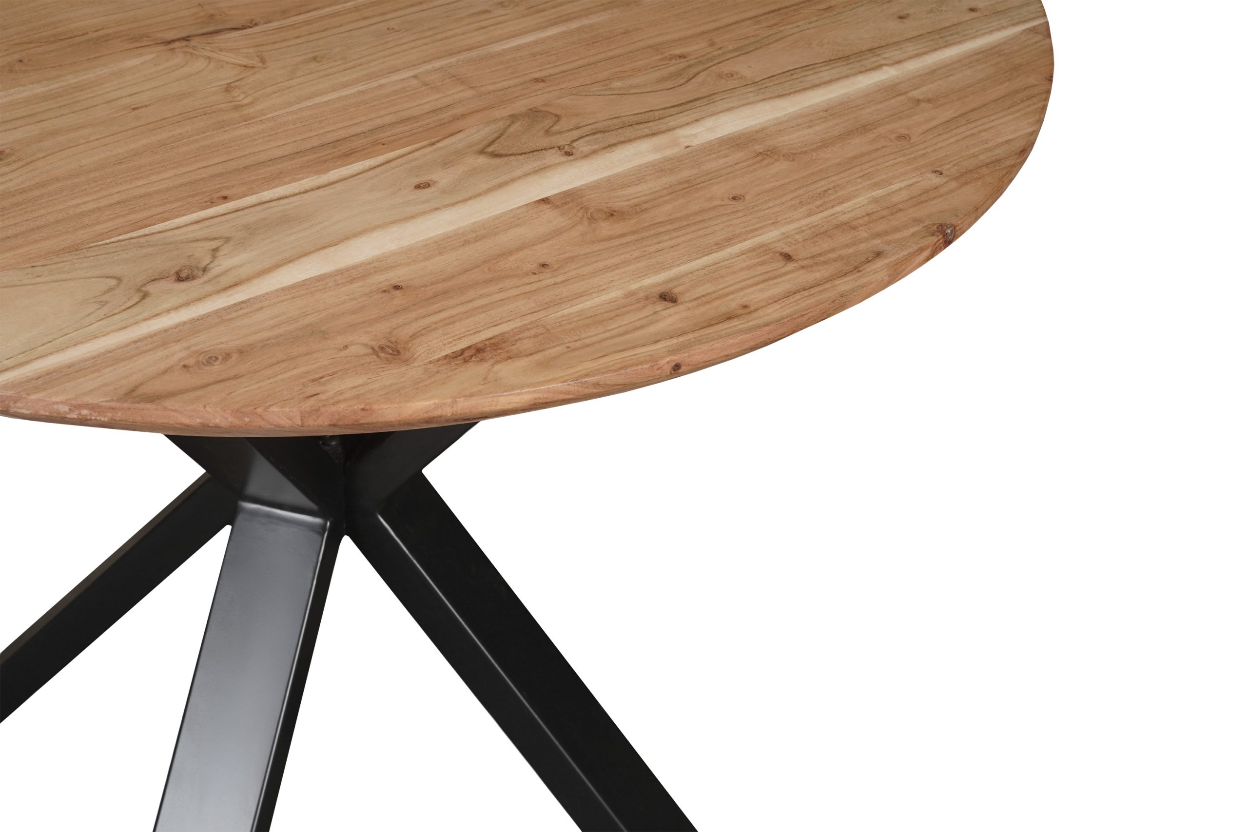 Edler Esstisch Kimberly, 105 cm rund, Akazienholz massiv + Farbe Natur, Spider-Gestell Schwarz, Schweizer Kante