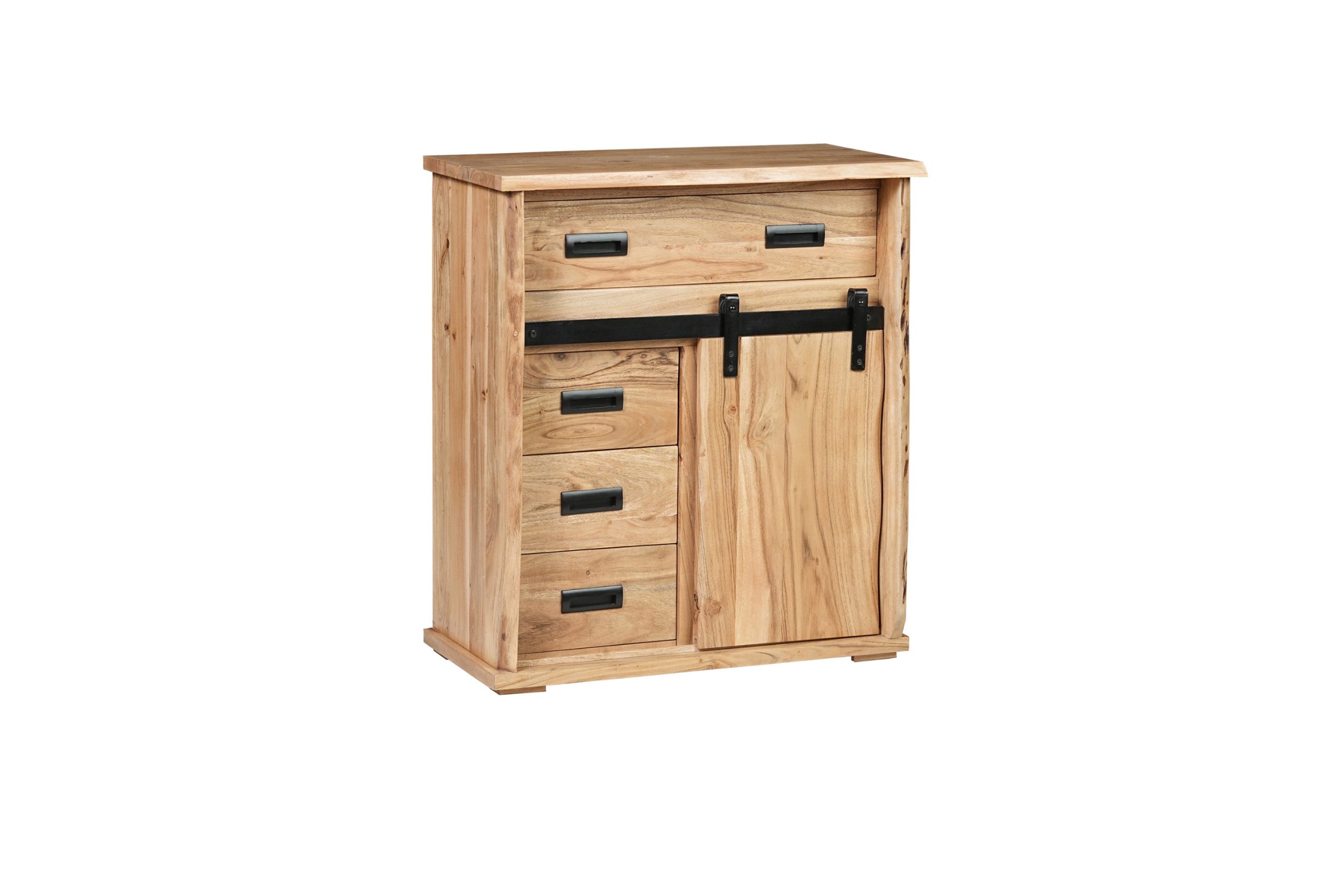 Sideboard Lian VI | Akazie Naturfarben | Schiebetür, 2 Fächer & 4 Schubladen | mit Baumkante | 75x35x85 cm