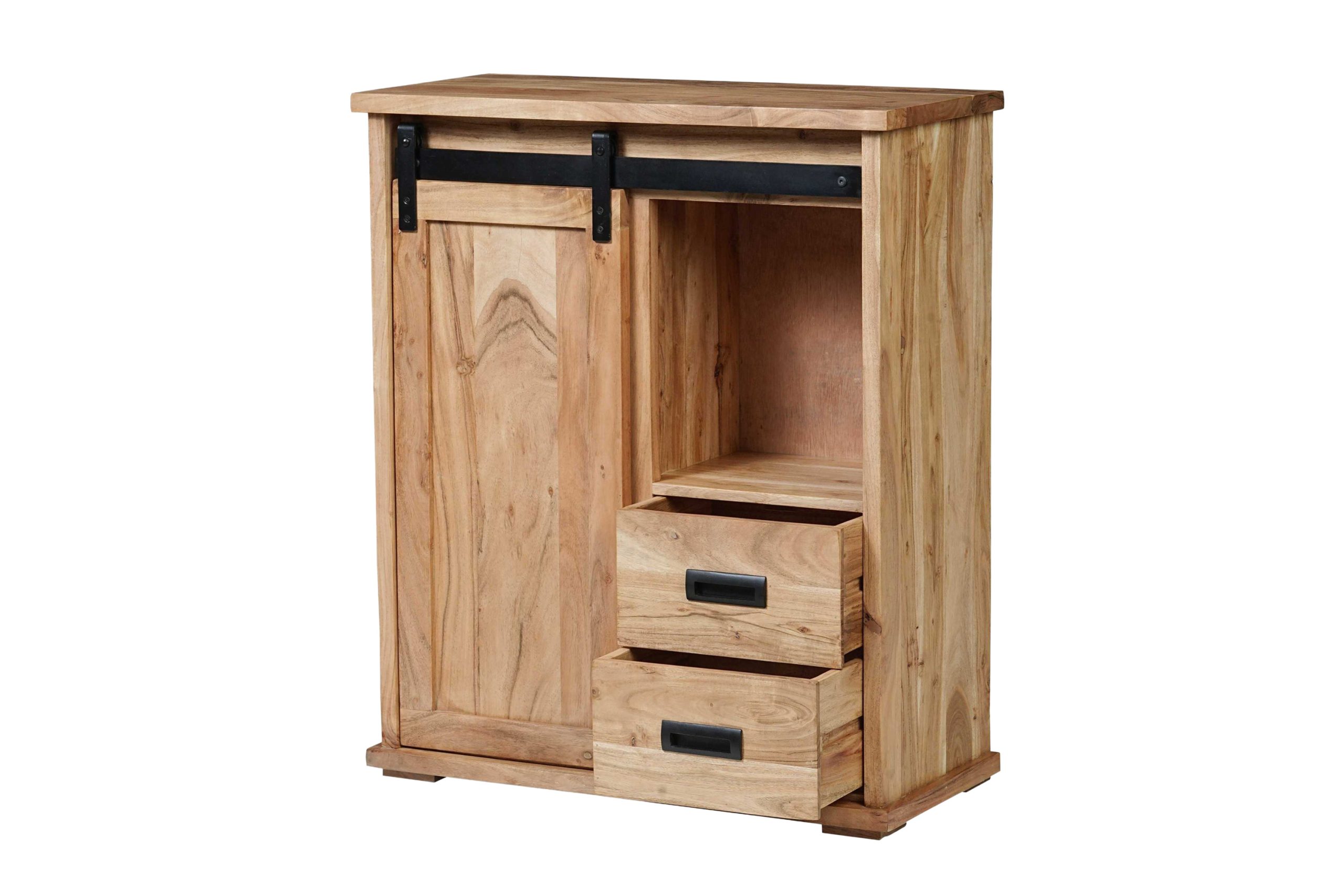 Das Sideboard aus massivem Akazienholz in Natur vereint natürliche Schönheit mit industriellen Akzenten. Durch die einzigartige Maserung wird jedes Möbelstück zu einem Unikat, das Wärme und Stil in Ihr Zuhause bringt.
