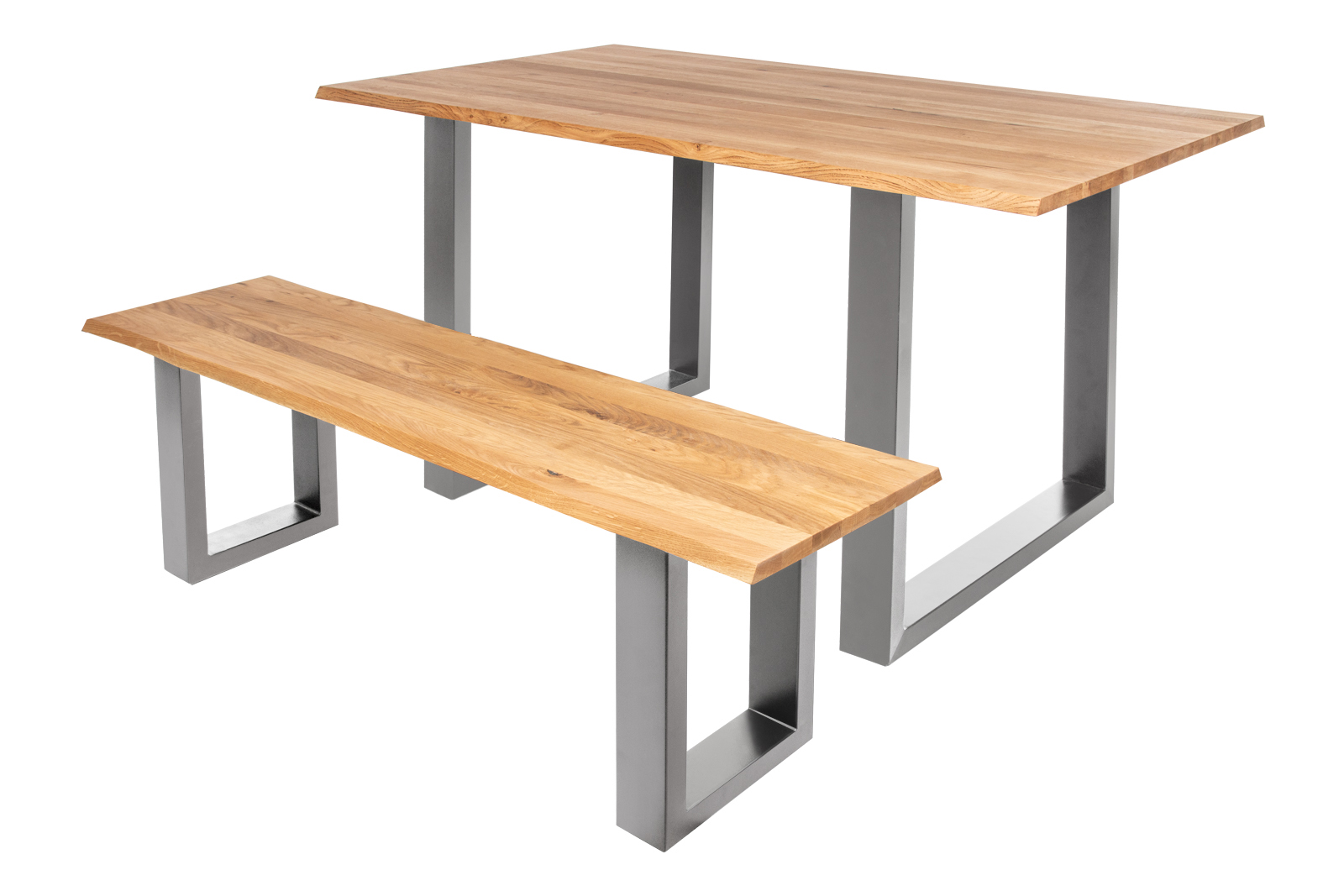 Sitzbank Baumkante 200 cm Eichenholz massiv geölt silber ENRICO