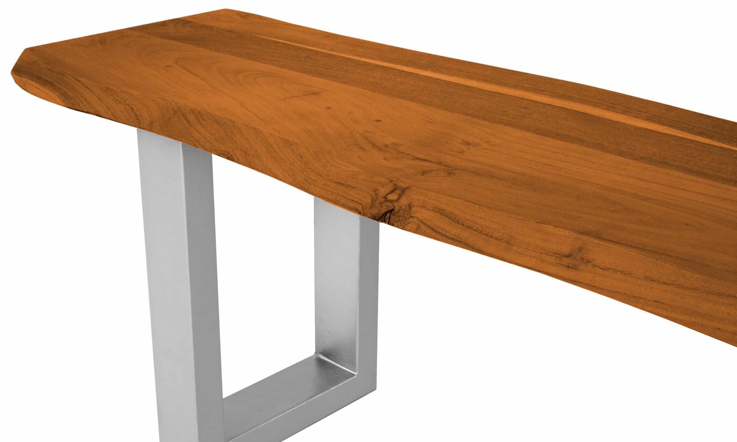 Sitzbank Holz massiv mit echter Baumkante und Eisengestell