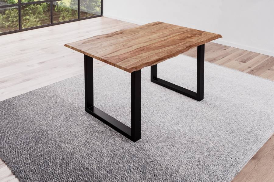 Die Kombination unserer metallenen Tischgestelle mit der massiven, naturbelassenen Holzplatte ergibt die perfekte Symbiose aus Natürlichkeit und modernem Touch.