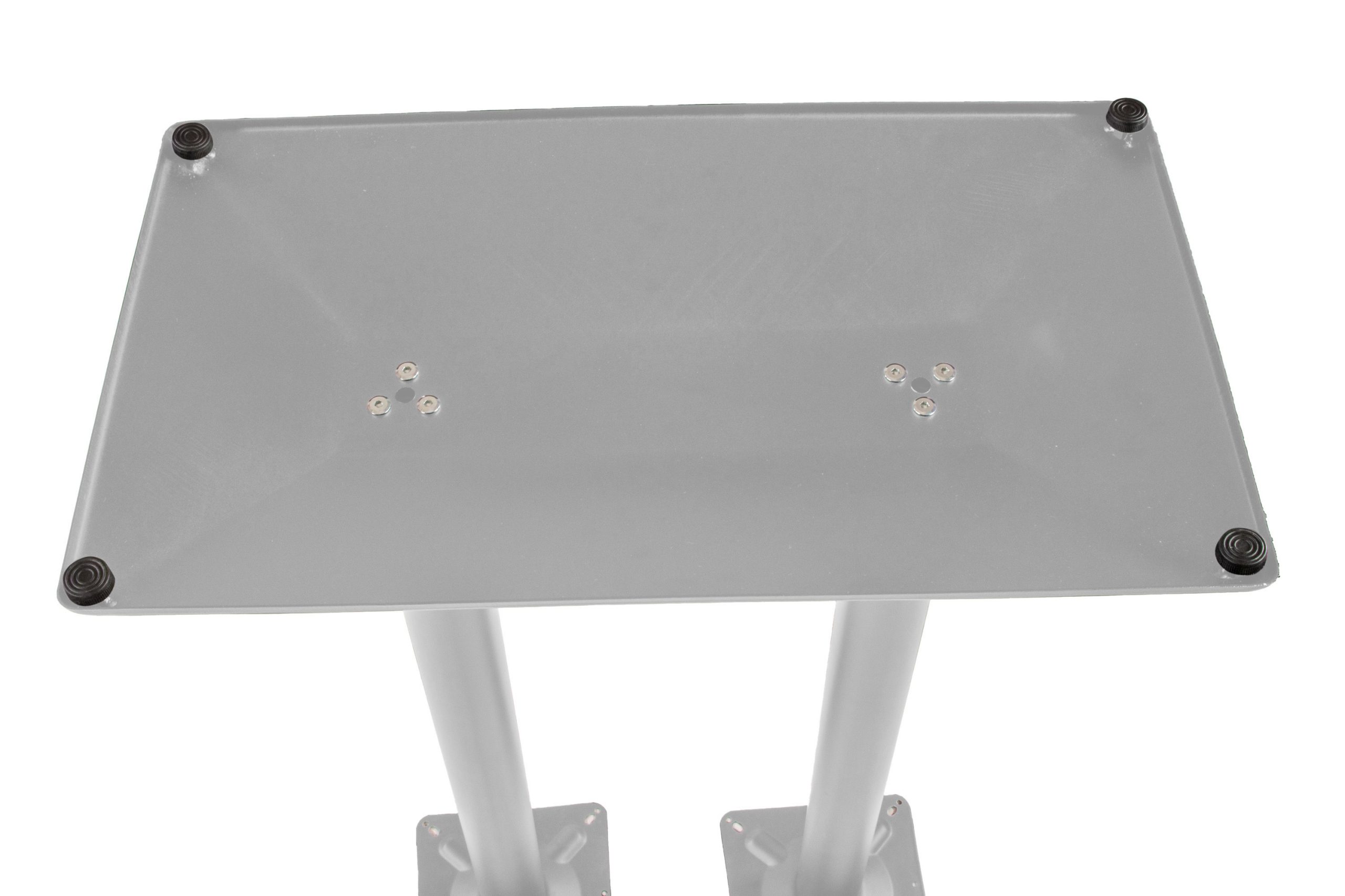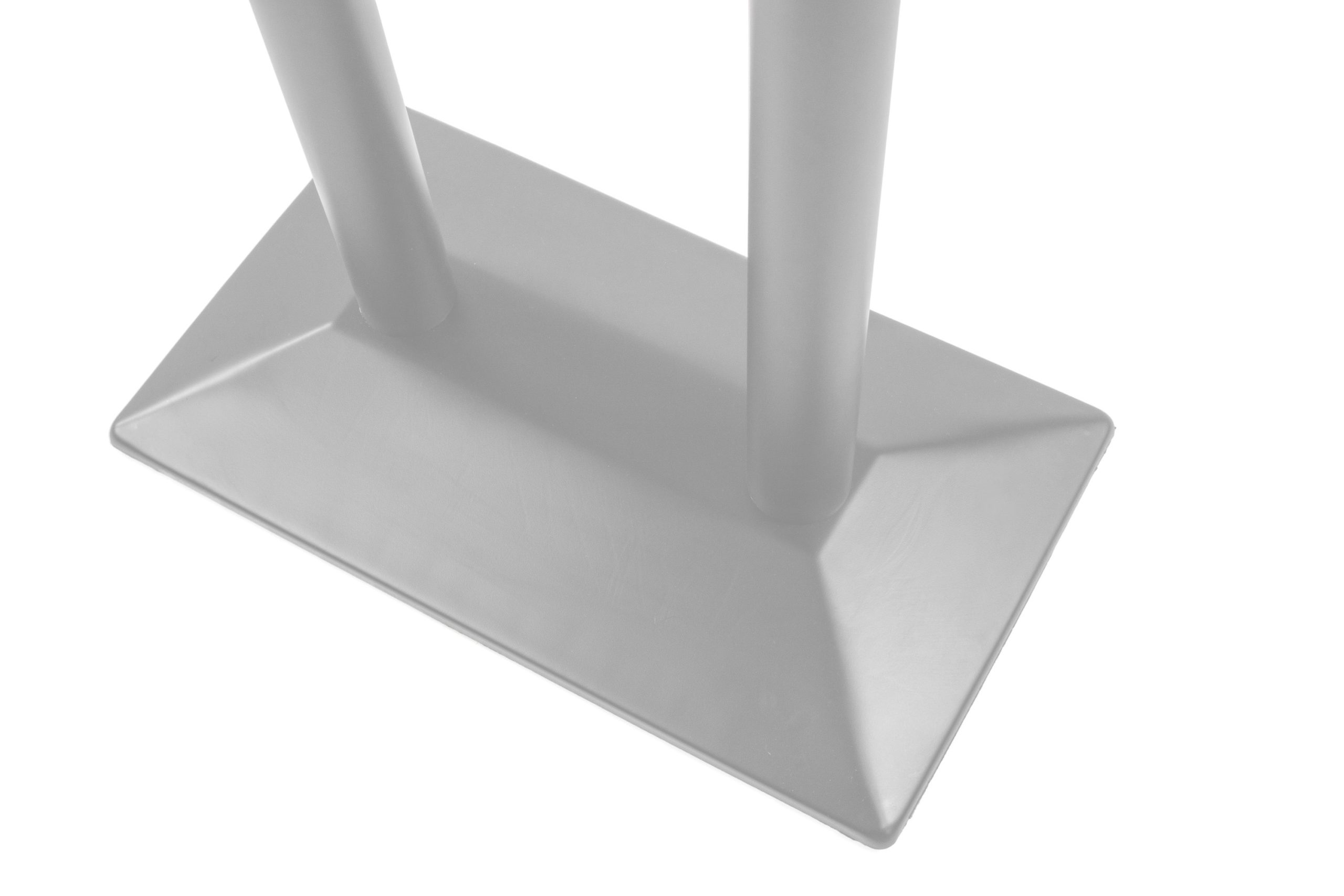 Der Standfuß bietet eine stabile und stilvolle Basis für hochformatige Tischlösungen. Mit seiner robusten Doppelsäulen-Konstruktion ist er optimal für Bartische und andere erhöhte Tischkonzepte geeignet. Die hochwertige silberne Lackierung verleiht dem Tischgestell eine moderne Optik, die sich harmonisch in verschiedene Einrichtungsstile einfügt.