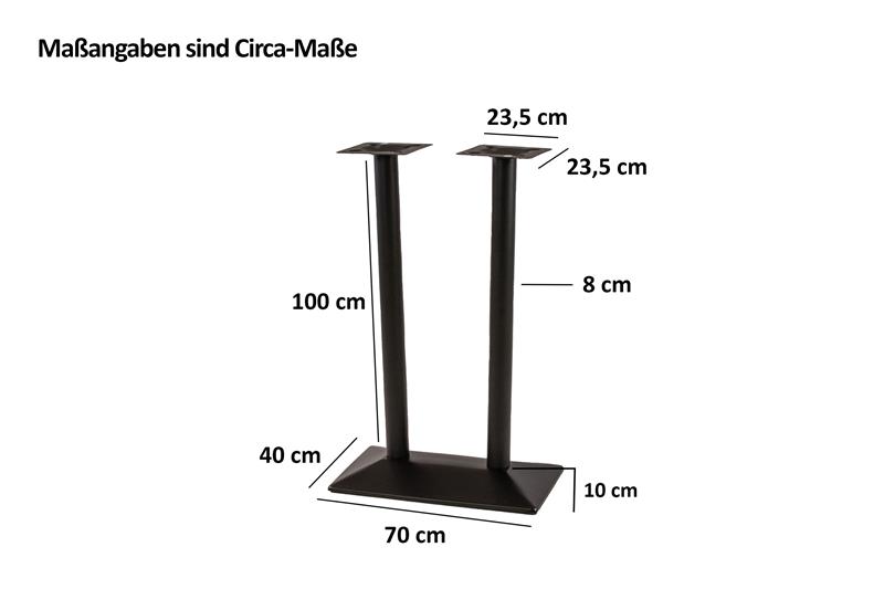 Die zwei stabilen Säulen garantieren hohe Tragkraft und Standfestigkeit, wodurch das Tischgestell ideal für größere und schwerere Tischplatten geeignet ist. Ob als Bartisch, Stehtisch oder Empfangstresen – das Gestell ermöglicht eine vielseitige Nutzung und lässt sich mit unterschiedlichen Tischplatten kombinieren. Die universelle Montageplatte sorgt für eine sichere und einfache Befestigung.