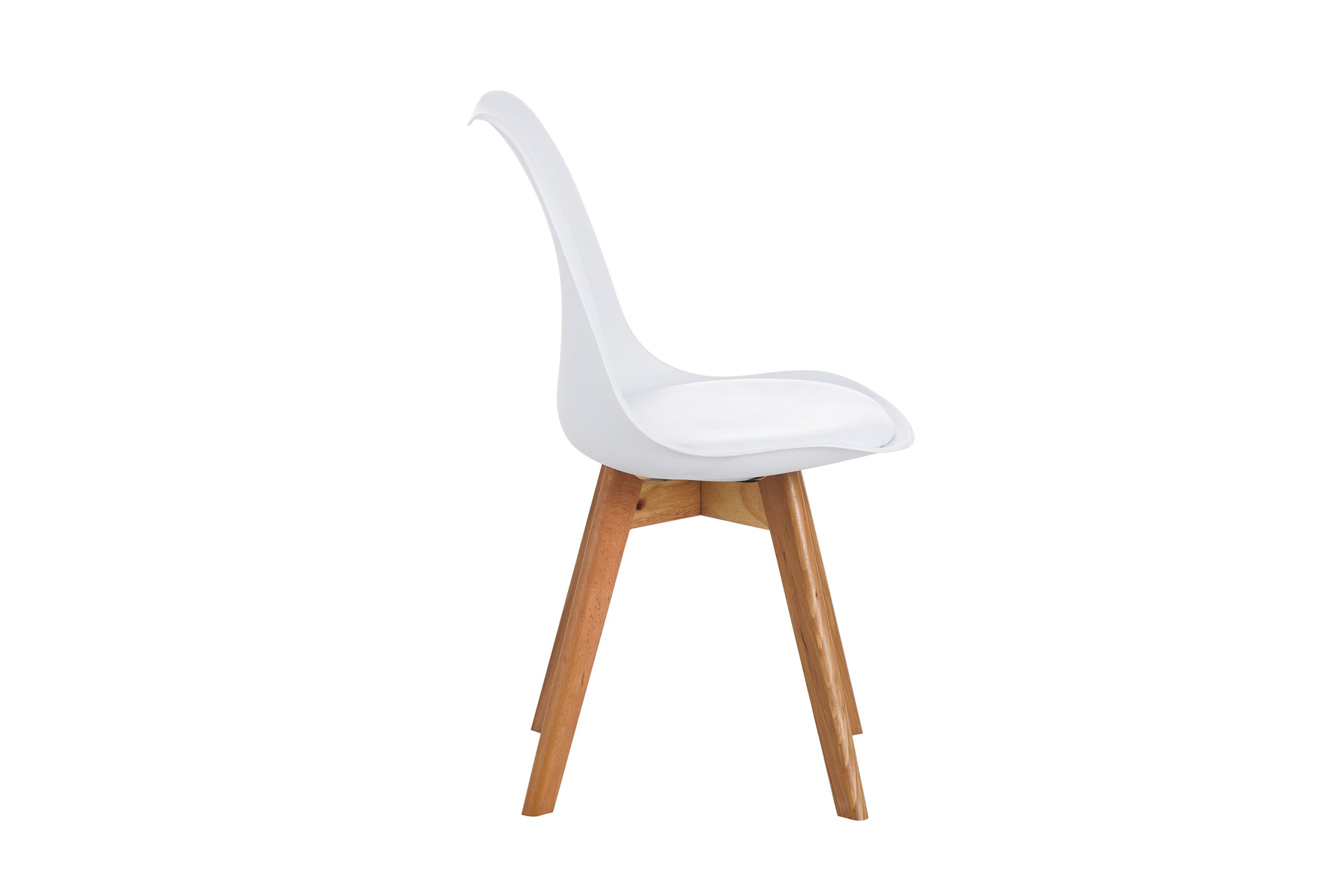 Abgerundet wird das Set durch bequeme Schalenstühle mit weißer Sitzschale und gepolstertem Kissen. Das elegante Vierfußgestell aus eichefarbenem Massivholz passt optisch perfekt zum Tisch und bietet zugleich Stabilität und Gemütlichkeit.
