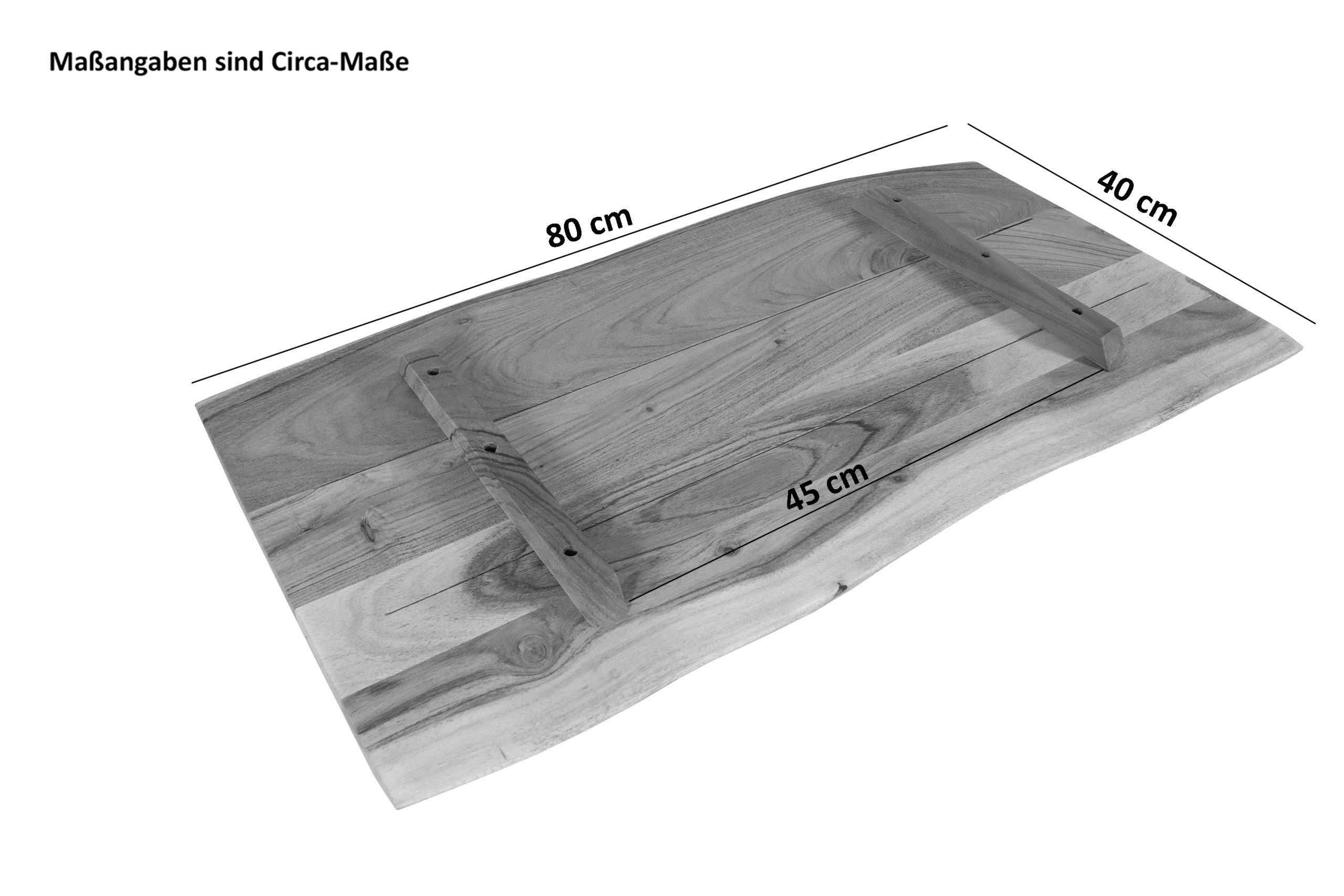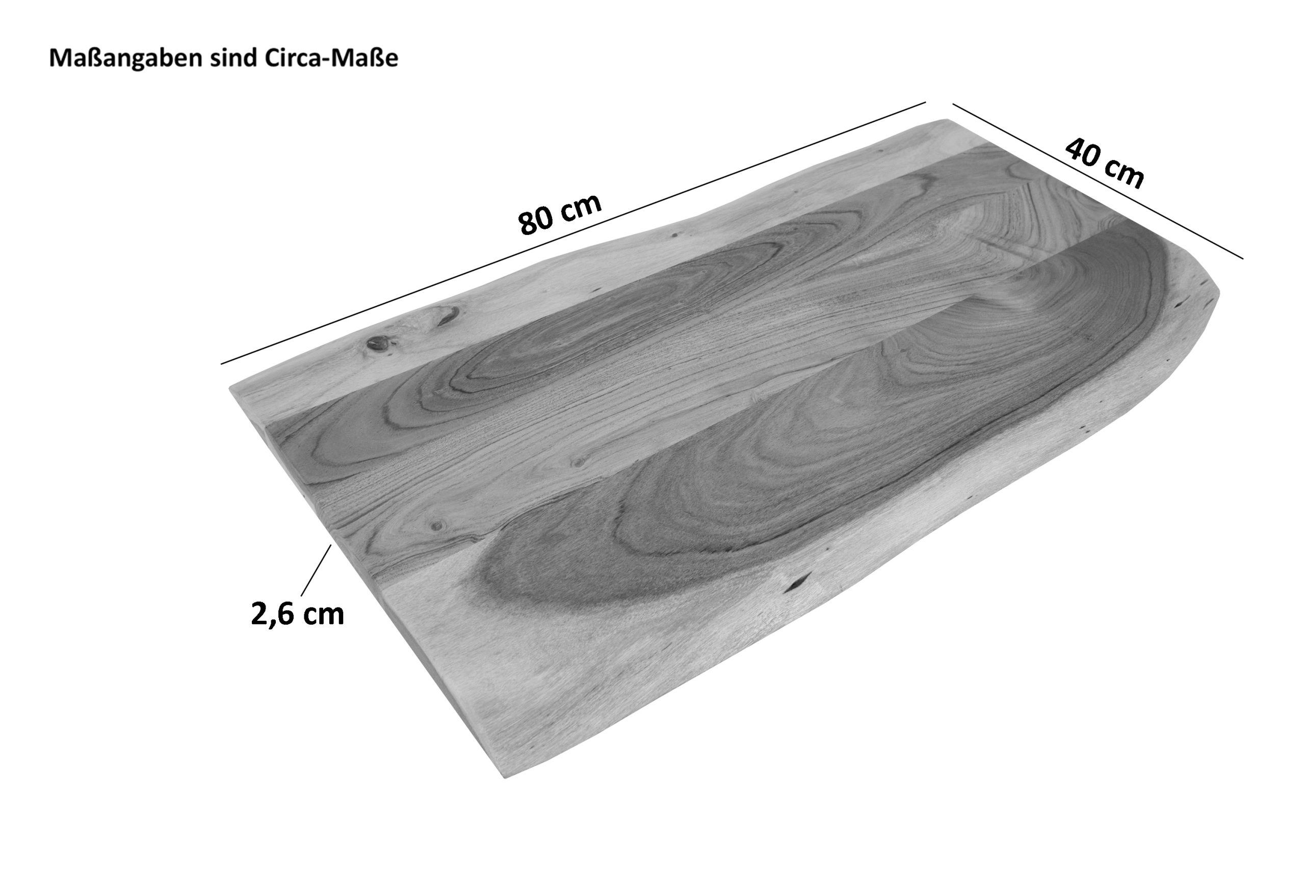 - Länge: 80 cm | Breite: ca. 40 cm | Tischplatte: ca. 2,6 cm