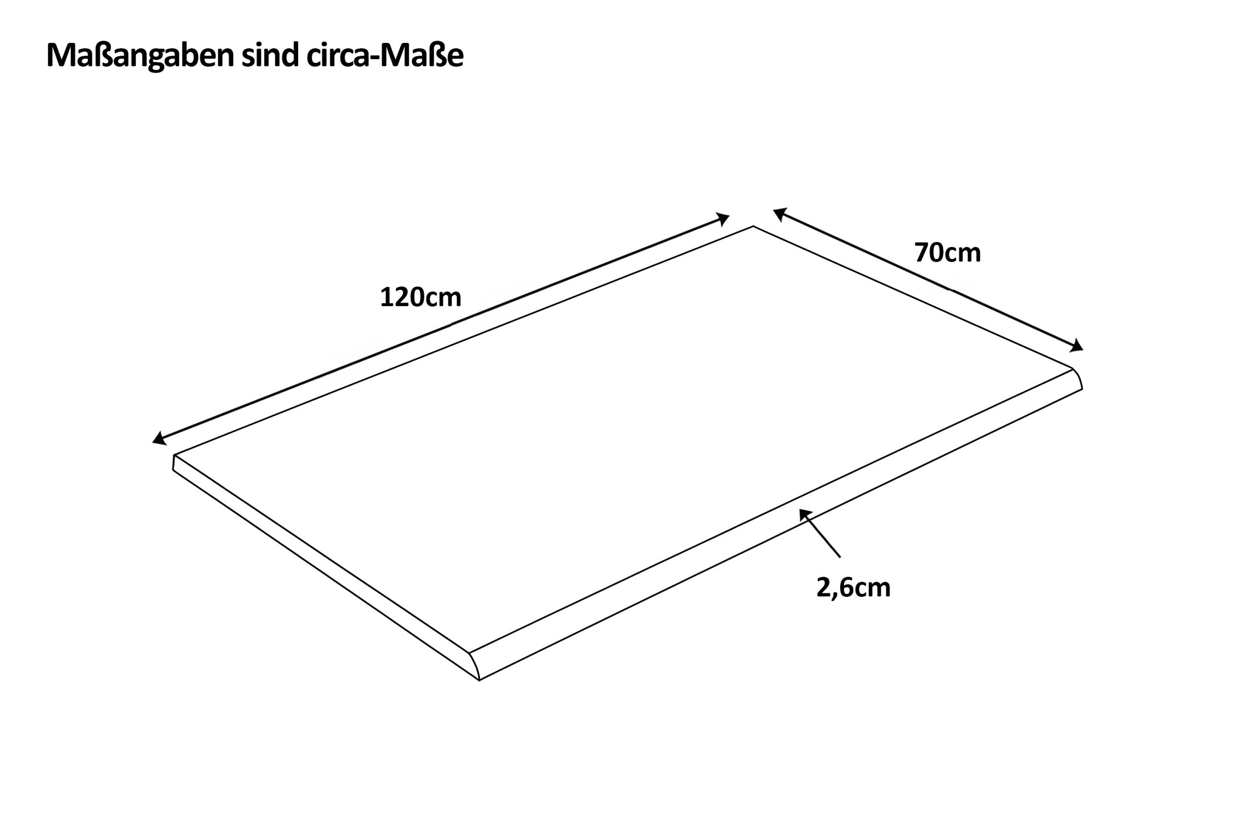 Länge: ca. 120 cm | Breite: ca. 70 cm | Plattenstärke: ca. 26 mm