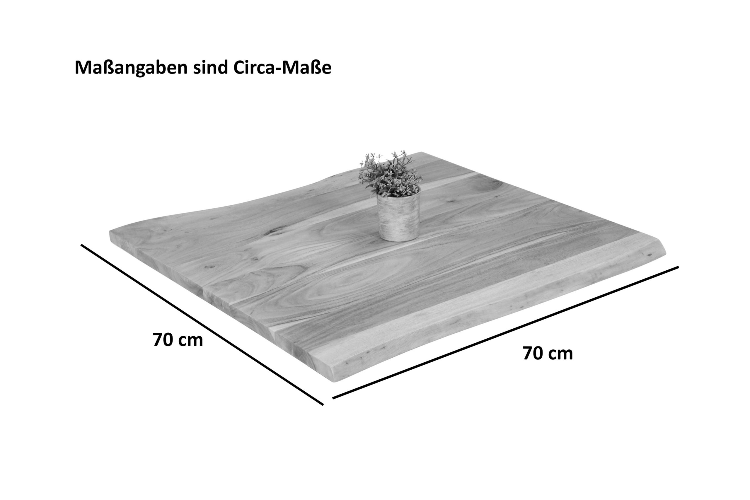 Holzplatte Brasileiro | 70 x 70 cm | Akazienholz massiv + nussbaumfarben | Echte Baumkante | DIY-Tischplatte