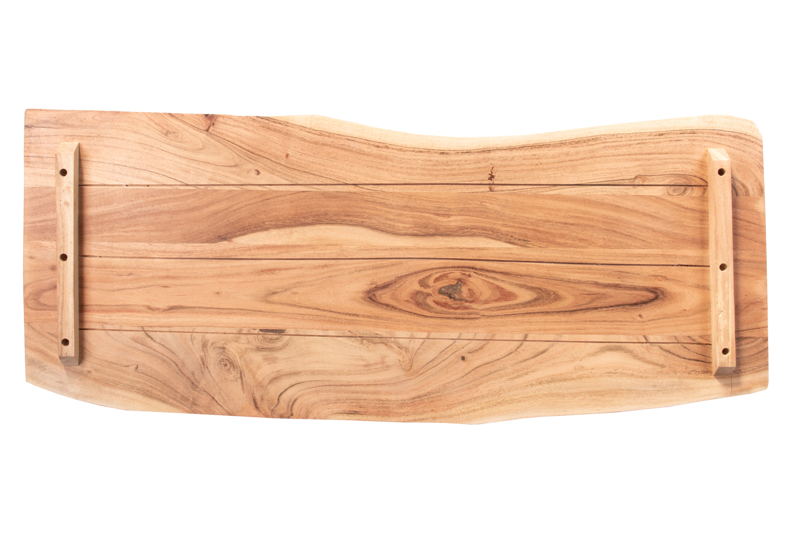 - Die 100 x 40 cm große Tischplatte ist aus massiver Akazie gefertigt.