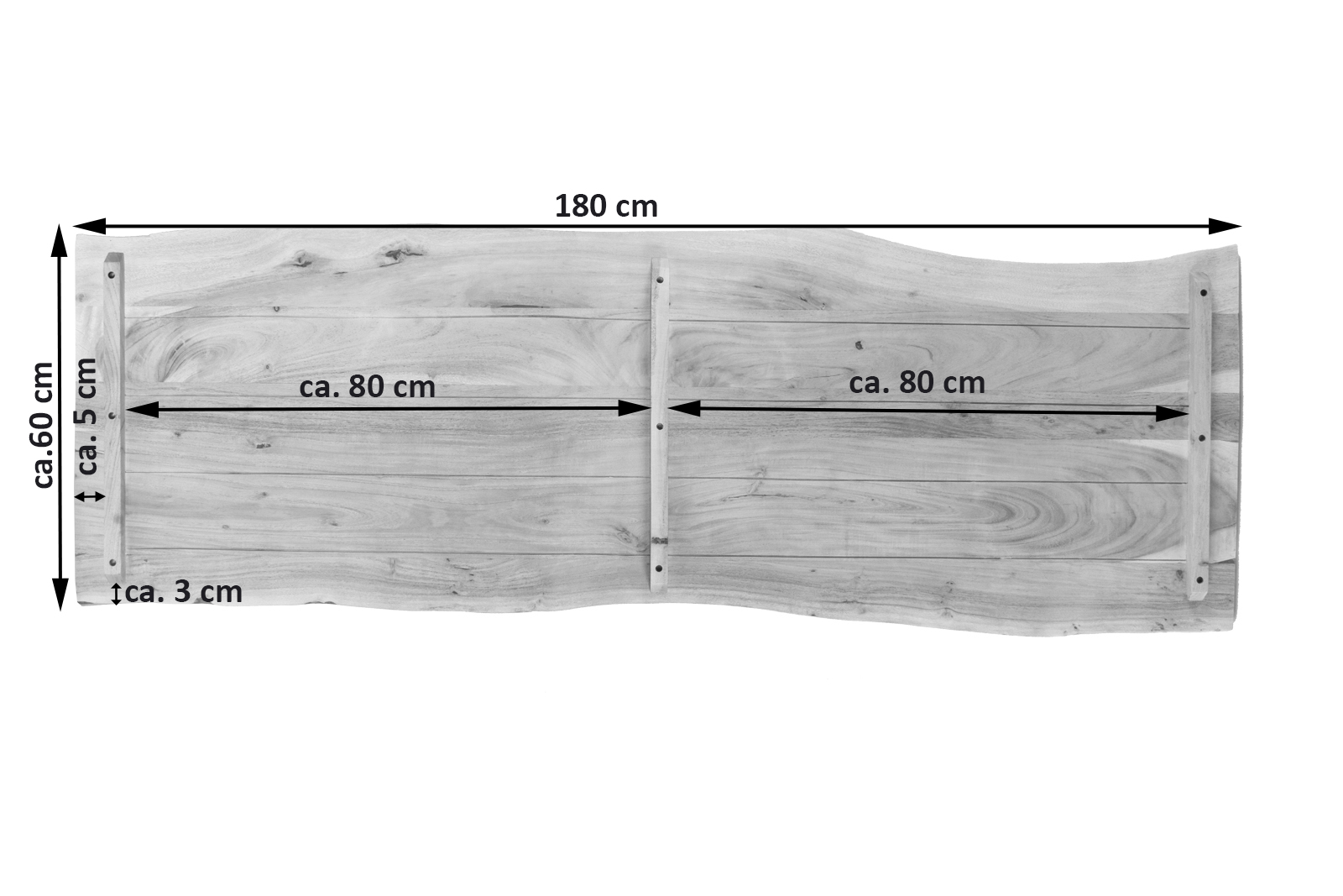 • Länge: 180 cm | Breite: ca. 60 cm | Tischplatte: ca. 2,6 cm