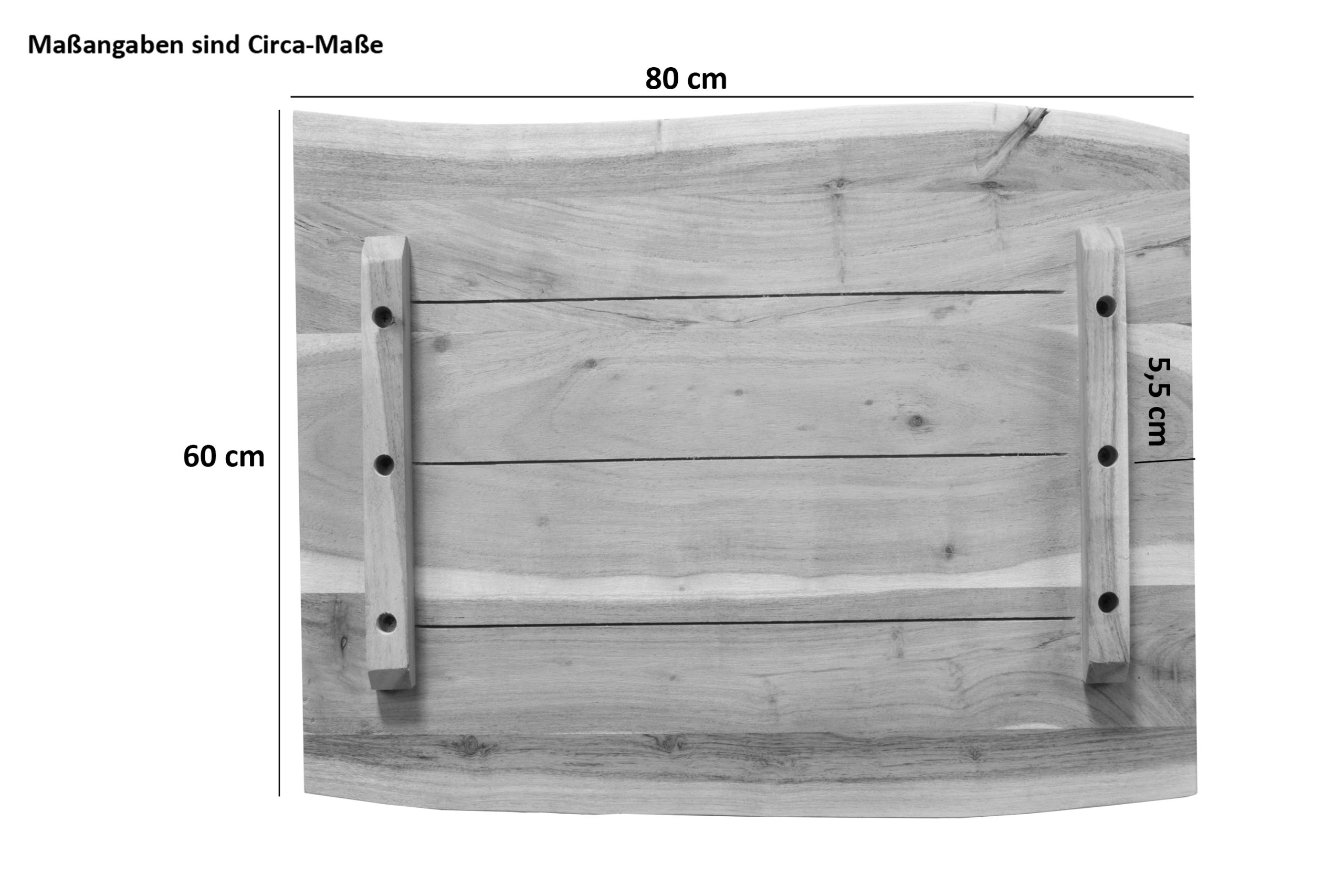 • Länge: 80 cm | Breite: ca. 60 cm | Tischplatte: ca. 2,6 cm