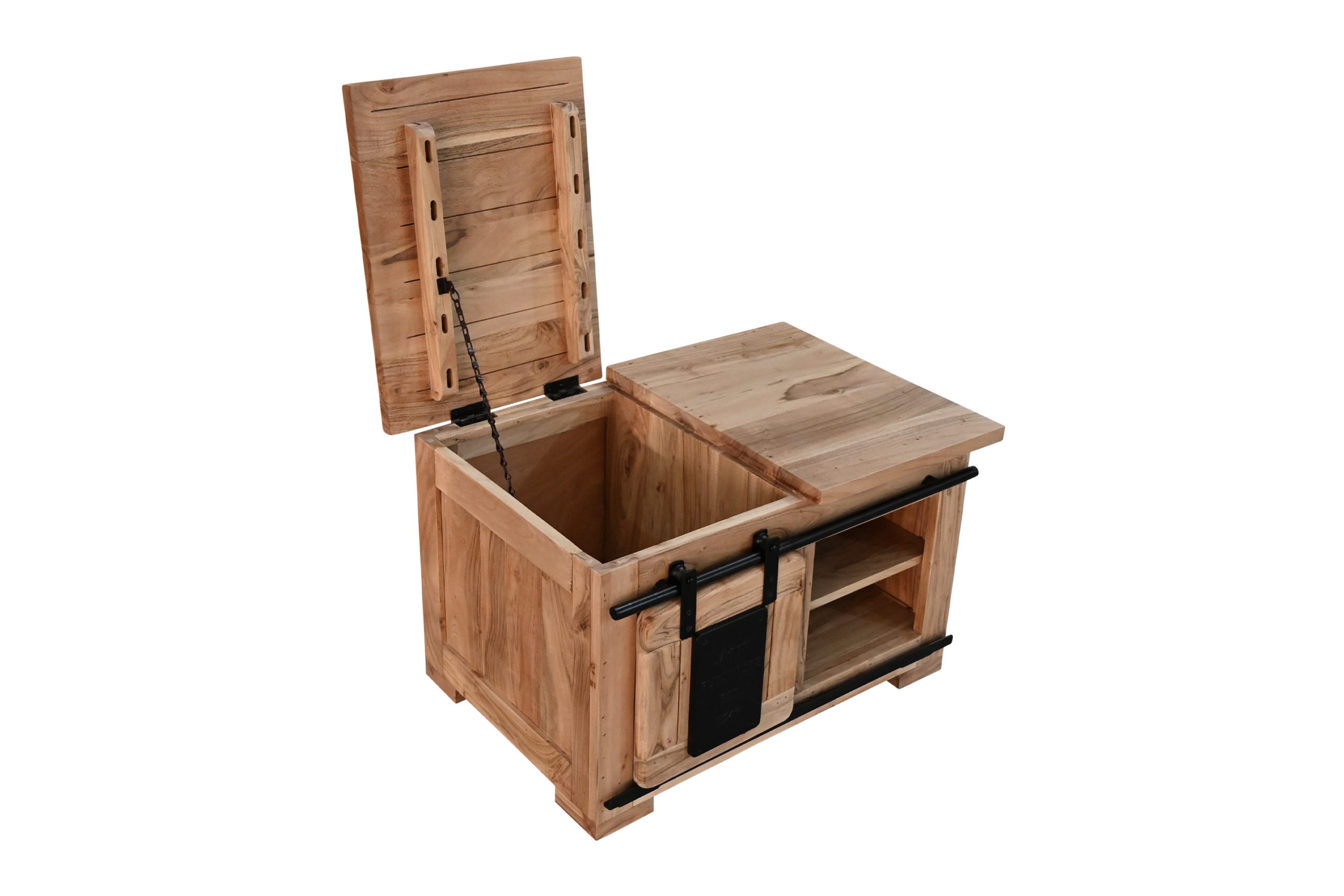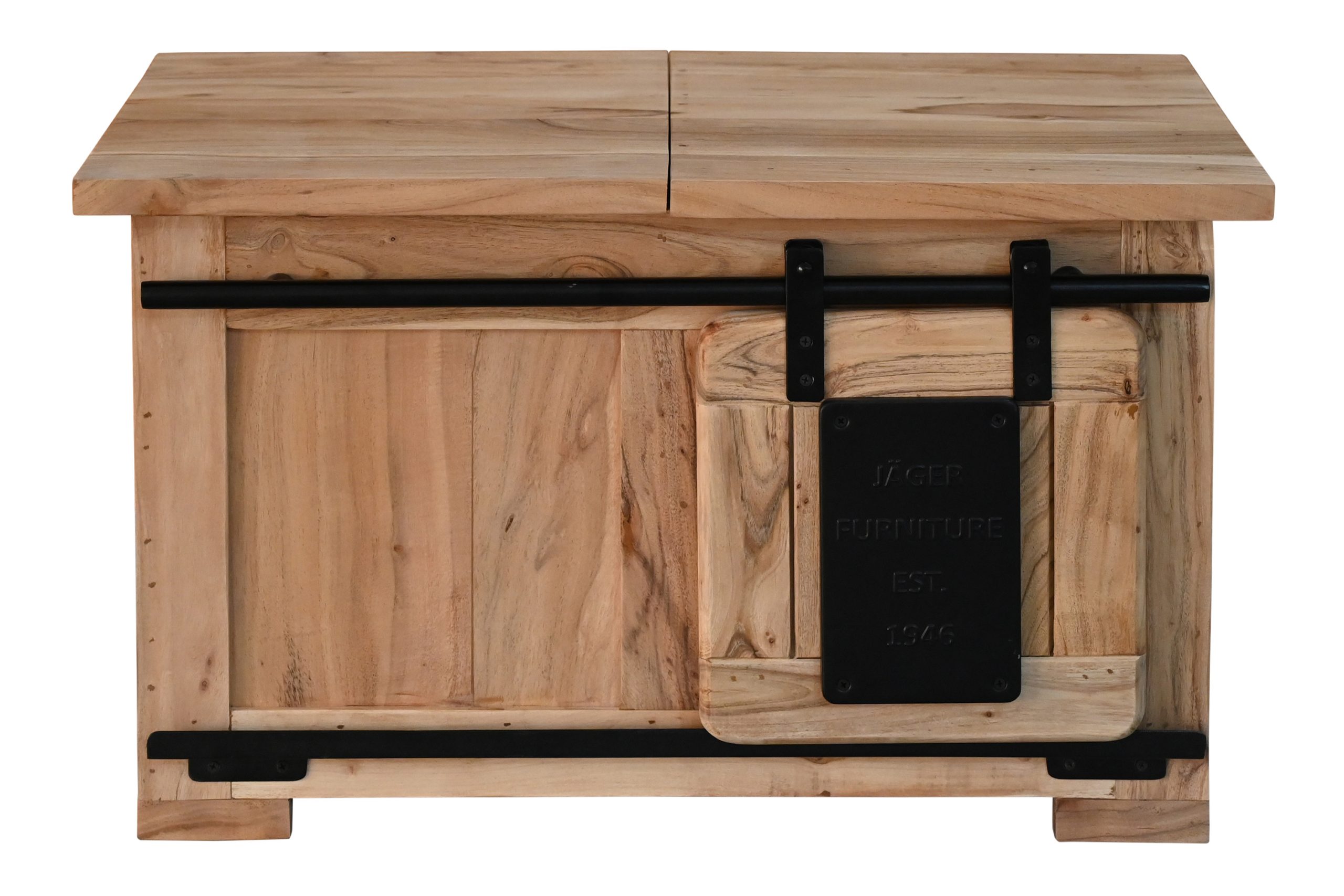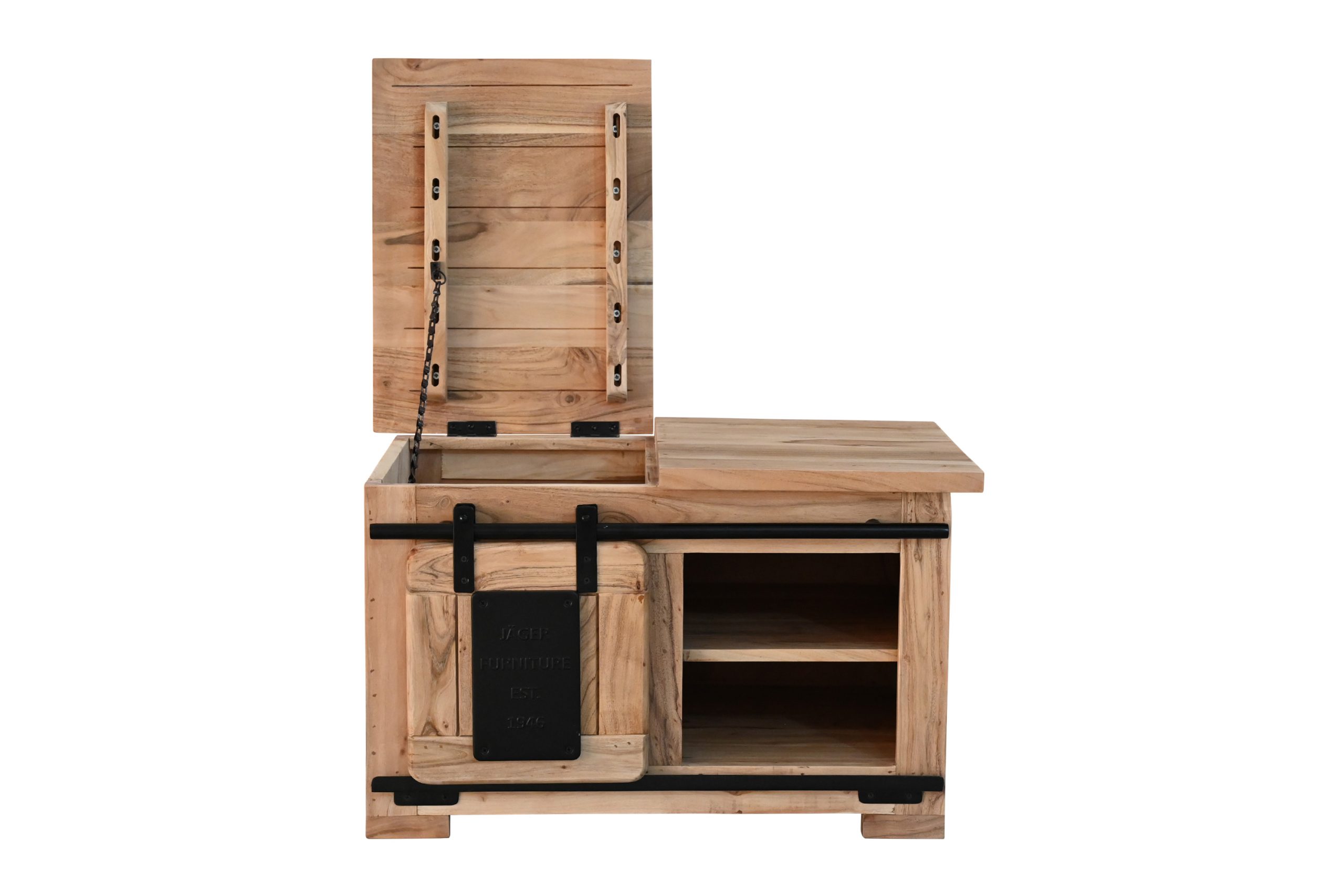 Bestellen Sie jetzt die Truhe Libro II – ein massives Akazienholz-Möbel, das natürliche Eleganz, praktischen Stauraum und trendiges Industrial-Design vereint!