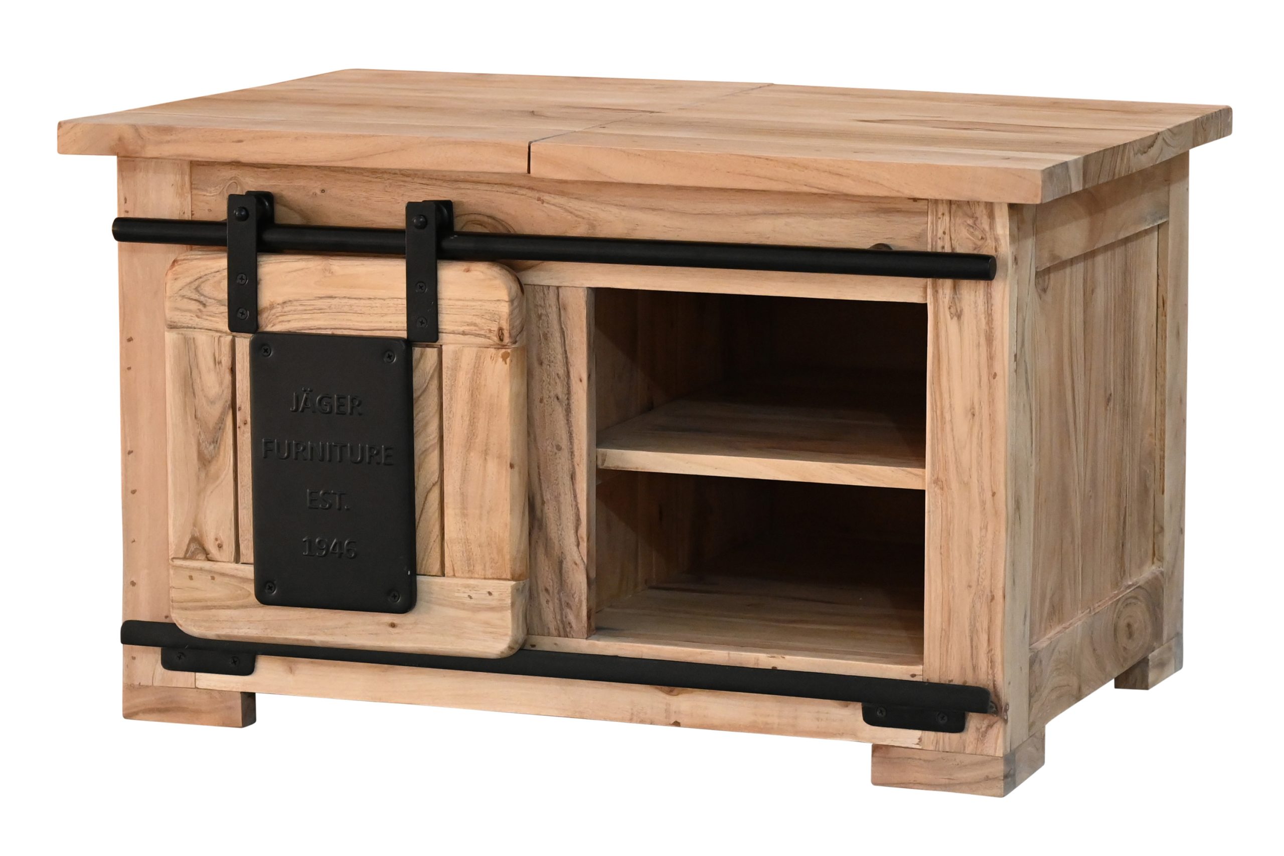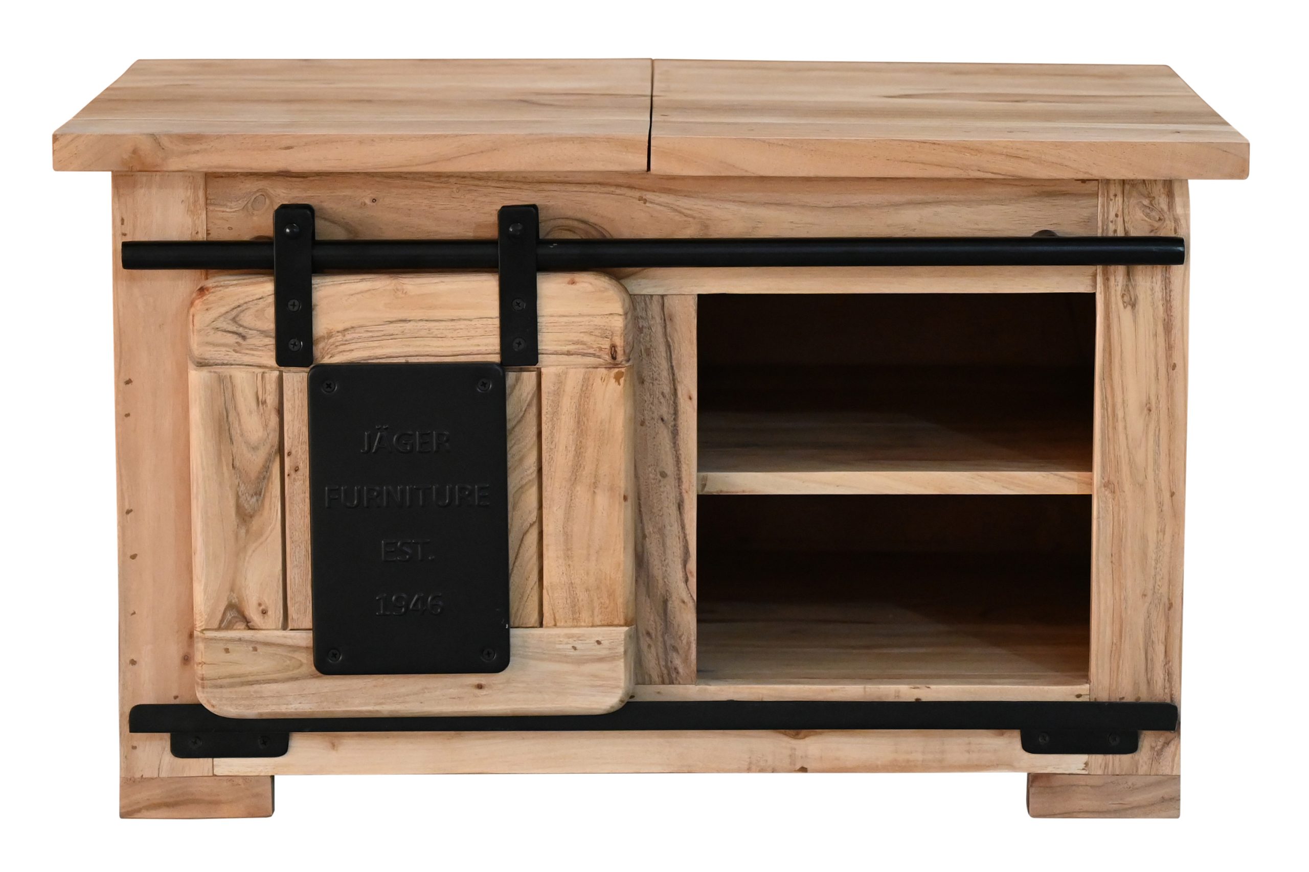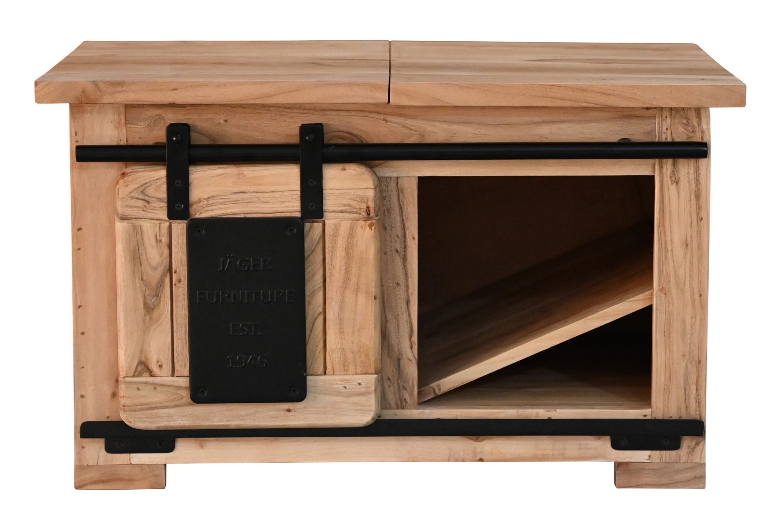 Bestellen Sie jetzt die Truhe Libro II – ein massives Akazienholz-Möbel, das natürliche Eleganz, praktischen Stauraum und trendiges Industrial-Design vereint!
