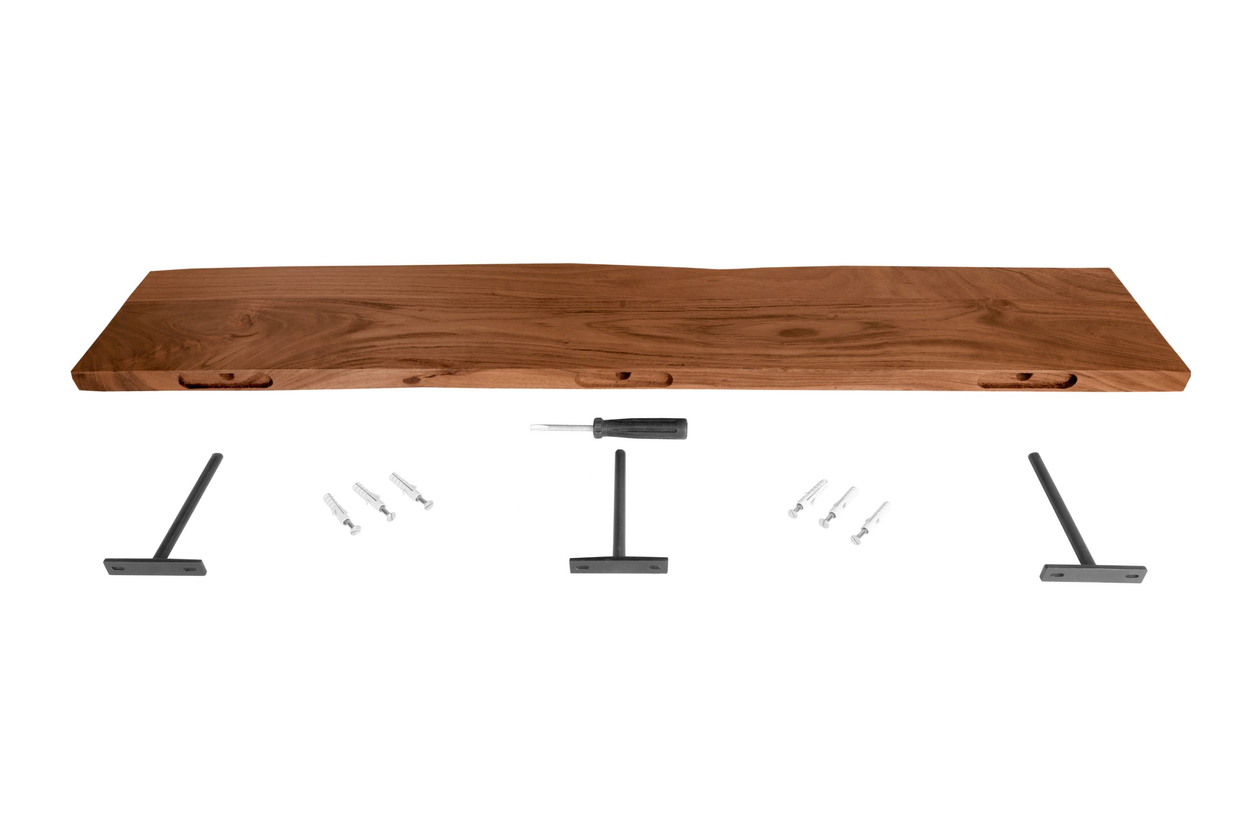 Das 26mm starke Regal lässt sich problemlos mit verschiedenen Möbelstücken kombinieren. Durch das elegante und moderne Erscheinungsbild unterstützt das Holzregal ein natürliches und modernes Lebensgefühl. Das Hängeregal ist hochwertig verarbeitet und zeichnet sich durch seine gute Qualität aus. Durch die Beibehaltung der natürlich geschwungenen Form der Baumkante holen Sie sich ein Stück Natur in Ihr Zuhause.