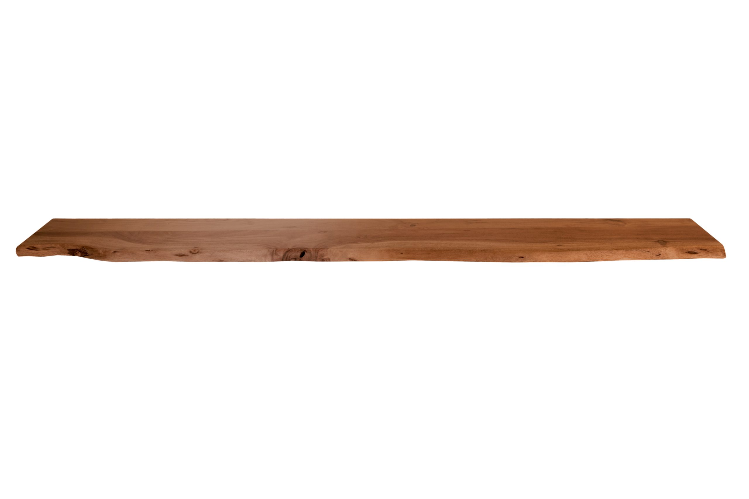 Trendiges Wandregal Amanda, echte Baumkante, Akazienholz nussbaumfarben, lackiert & massiv, 150×20 cm